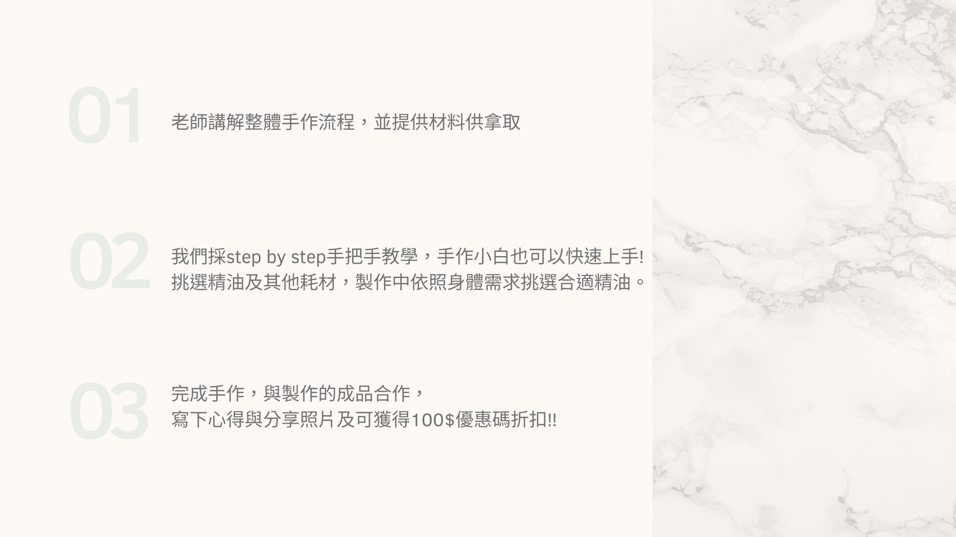 活動將帶您瞭解手工皂的製作過程外,還會讓您了解精油的特性與您適合的精油種類