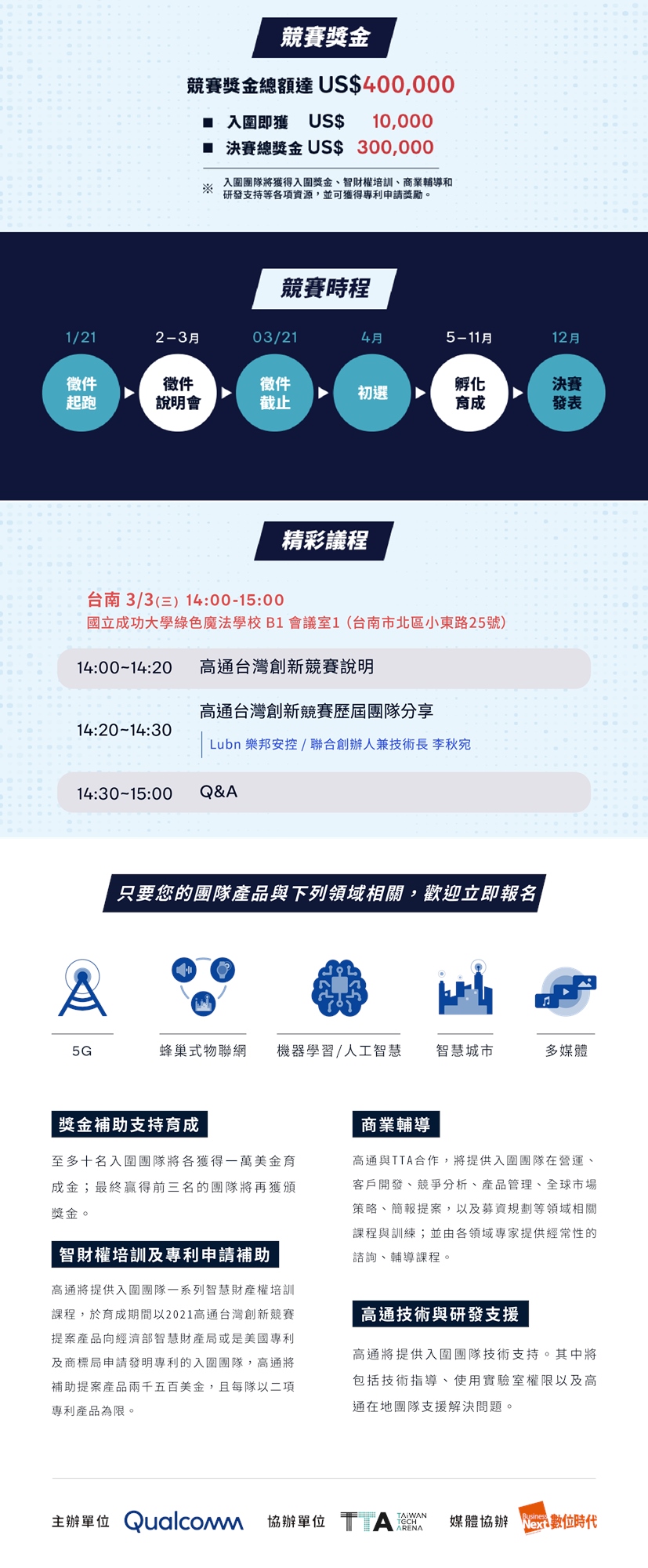 【3/3台南說明會】2021高通台灣創新競賽 Qualcomm Innovate in Taiwan Challenge