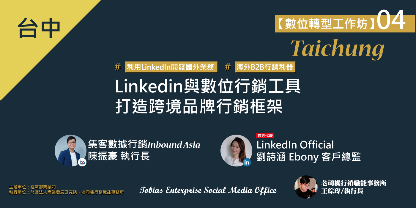 3/19【台中】數位轉型工作坊:Linkedin與數位行銷工具 打造跨境品牌行銷框架