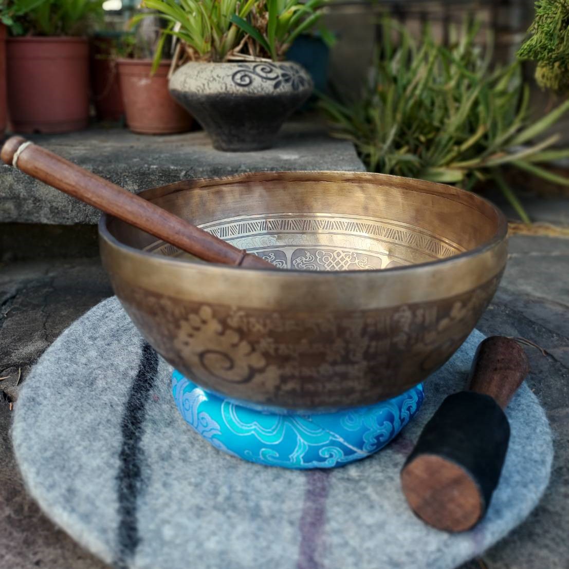 由金、銀、銅、鐵、錫、鉛、汞七種金屬組成的療癒缽,是以喜馬拉雅山的隕石燒熔提煉再由手工打造而成。由療癒缽發出的泛音聲響,能幫助身體放鬆,同時能平衡、調和人體的七個脈輪,人體能量隨之同頻共振的可能,身心能量隨之改變,帶來深層迅速的放鬆,七個脈輪裡淤塞的能量可以被疏通,減少緊張和壓力,整個身體經絡可以變得通暢無礙……平衡脈輪、開啟直覺力、消除負面能量。打破固化的心靈與思維模式、啟動生命力、喚醒細胞記憶、舒經活絡、補充生命能量。