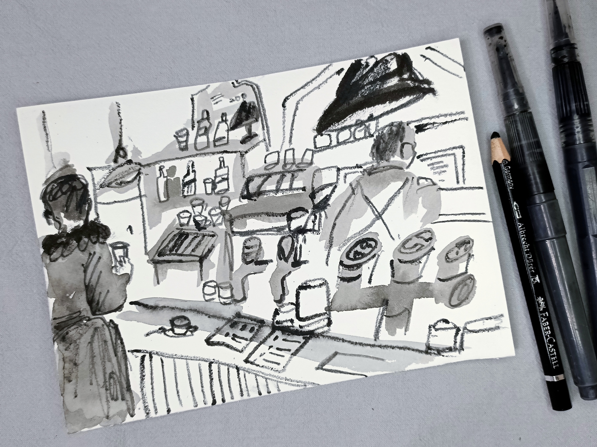 - 有速寫經驗,但想練習各種媒材結合的人。