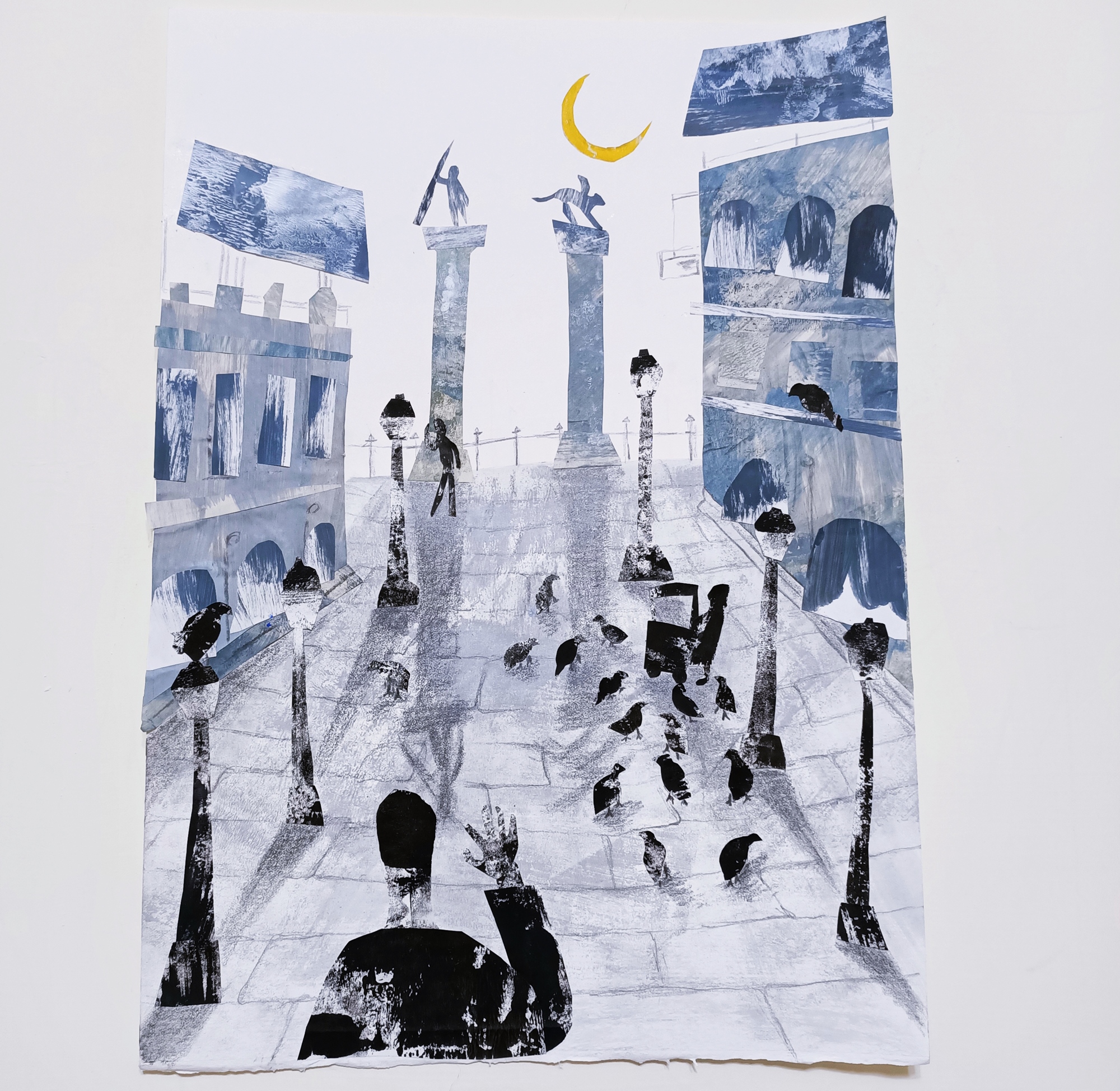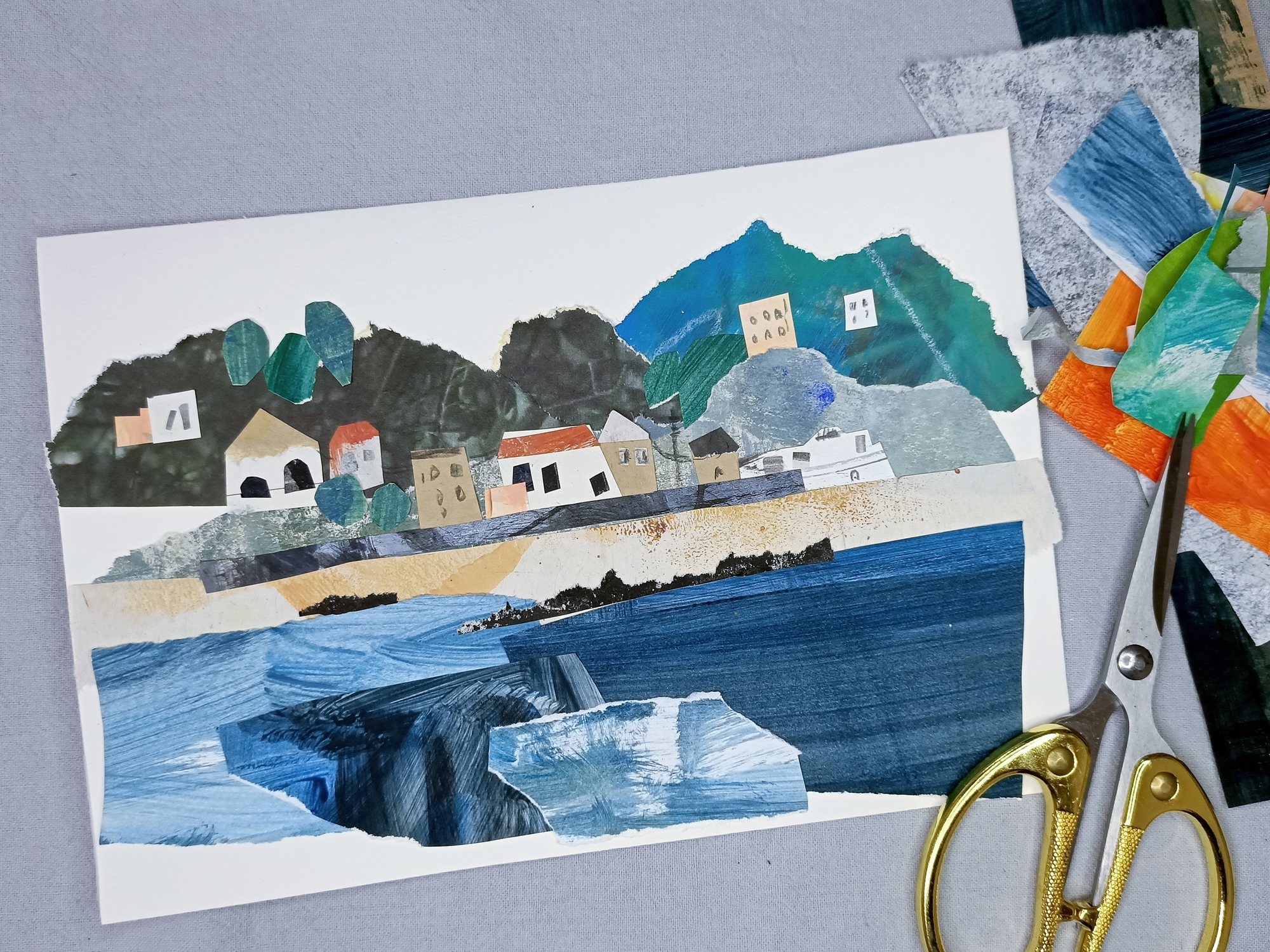 我們用剪刀代替畫筆的方式,練習用紙來拼貼構圖深入瞭解面的概念,並利用不同紙質紋理的變化性,來豐富我們的畫面。