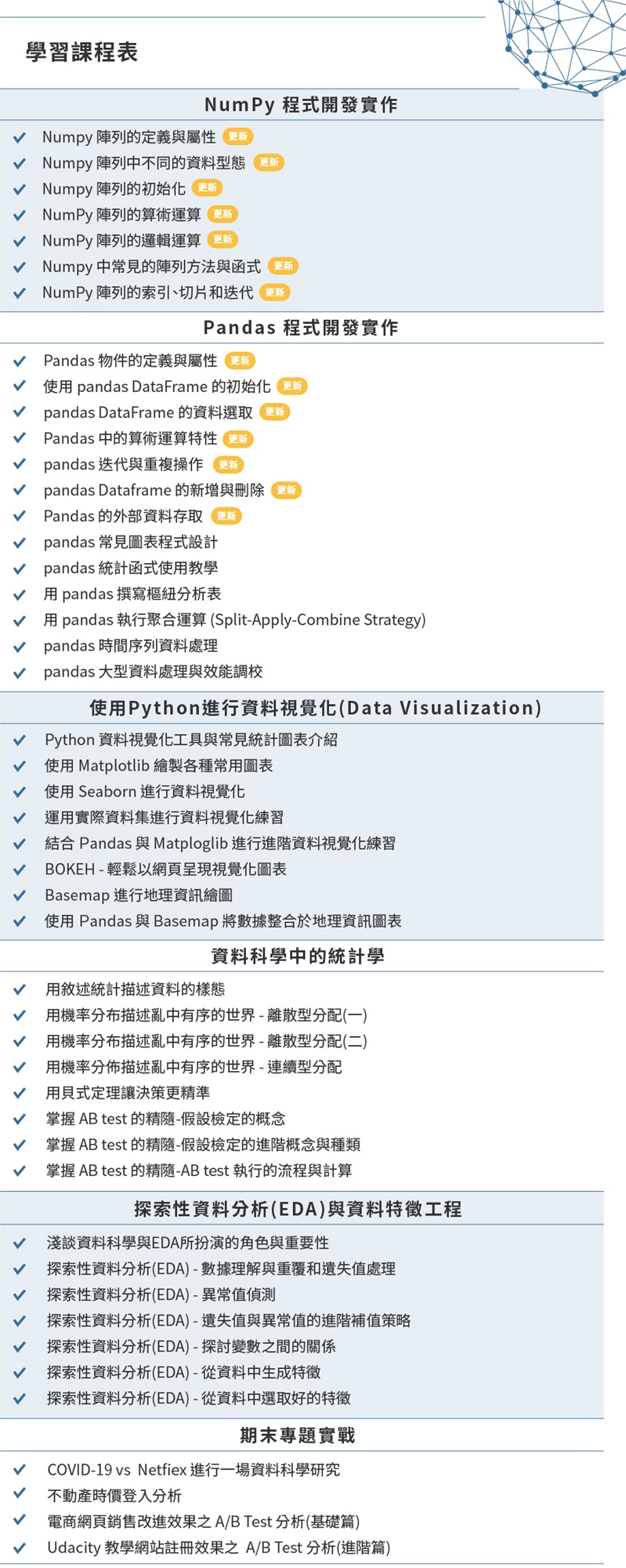 50多堂的 Python 資料科學核心知識點與技術實作教學