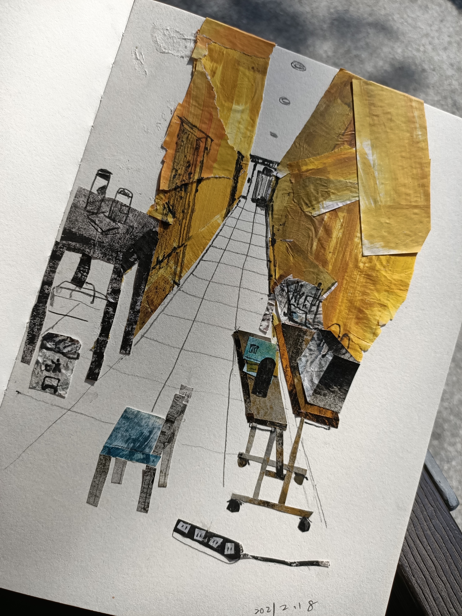➤中1.5個小時我們將練習前面實驗中的一個組合來練習從近物以及遠景的構圖練習,結合線條與面的概念。