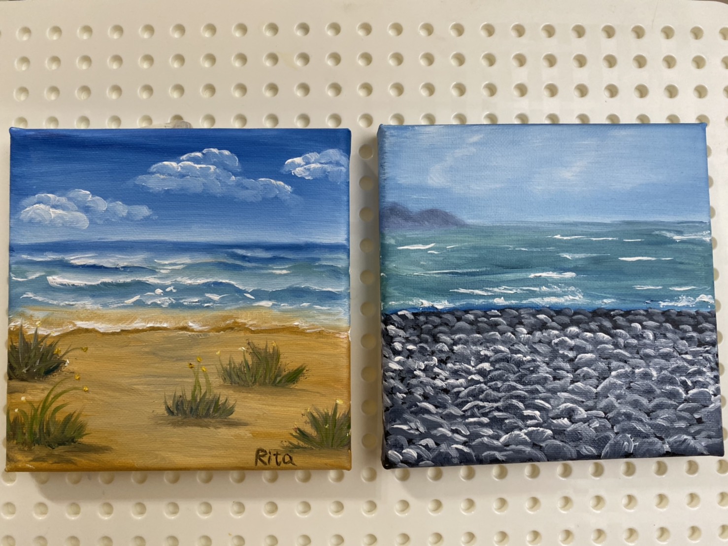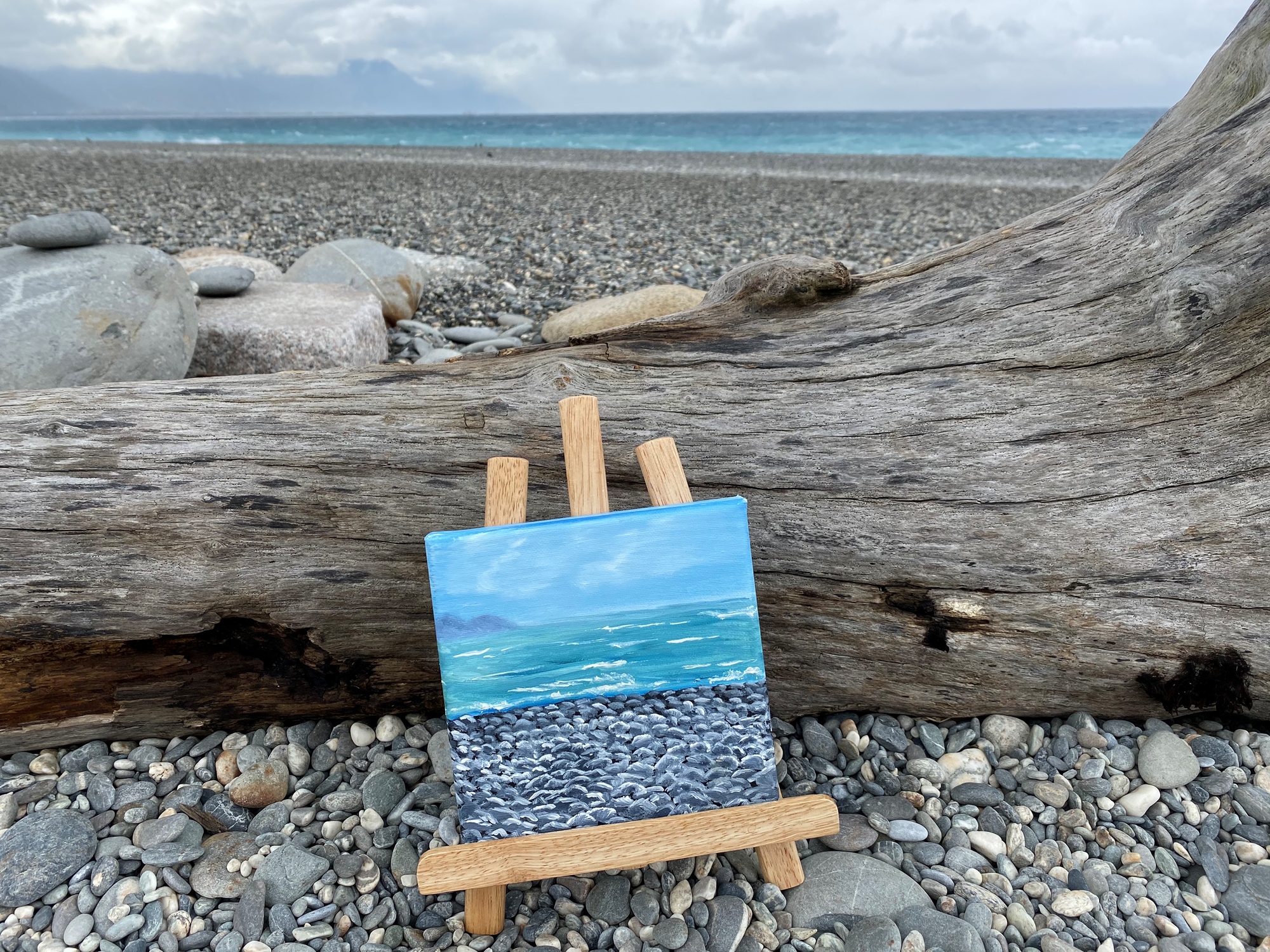 【鵝卵石沙灘畫】可學到天空、海、遠山、石頭畫法