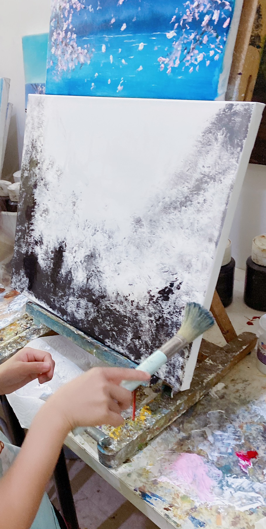 油畫不可用吹風機吹,,完成作品需等3-5天才會乾,