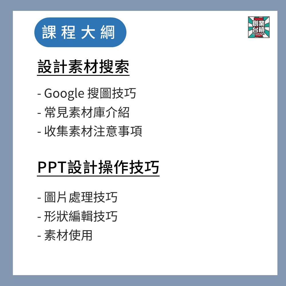 ※ 課程中將有安排實作練習,請務必攜帶筆記型電腦並安裝PPT。