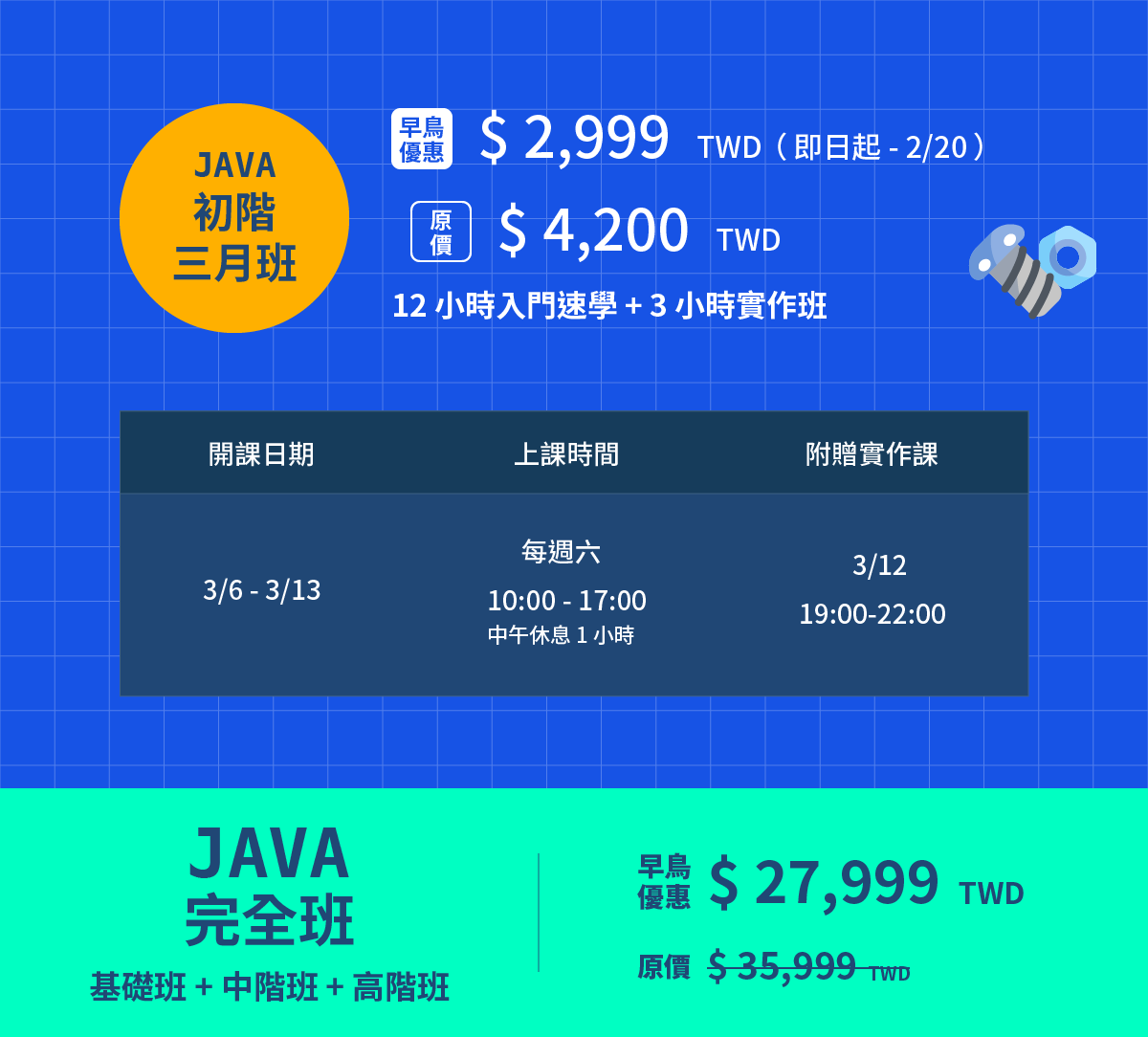 ▮ 更詳細的 Java 初、中、高階課程資訊請點選下方連結👇