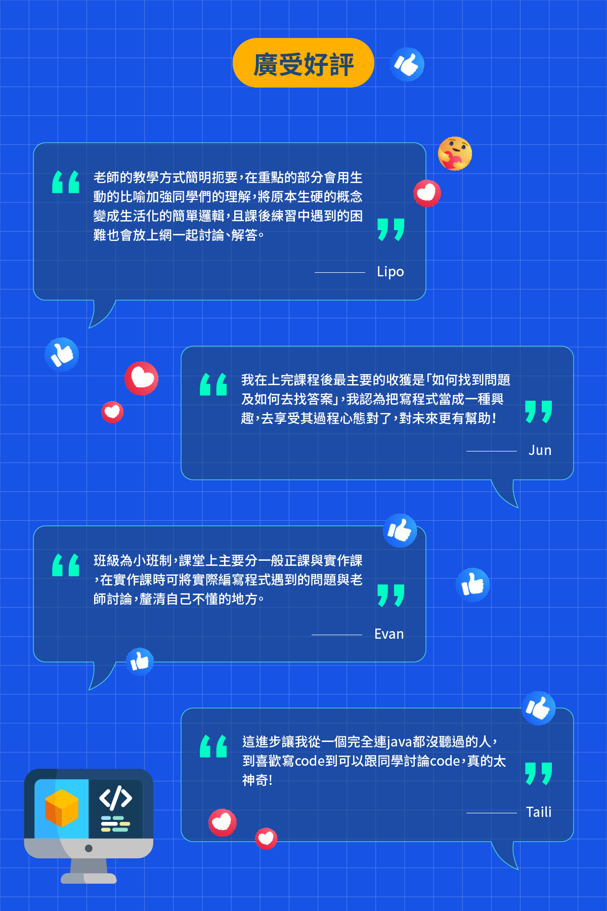 ▮ 堅持小班制教學,掌握每位學員的進度,並一對一解決你對Java的疑惑
