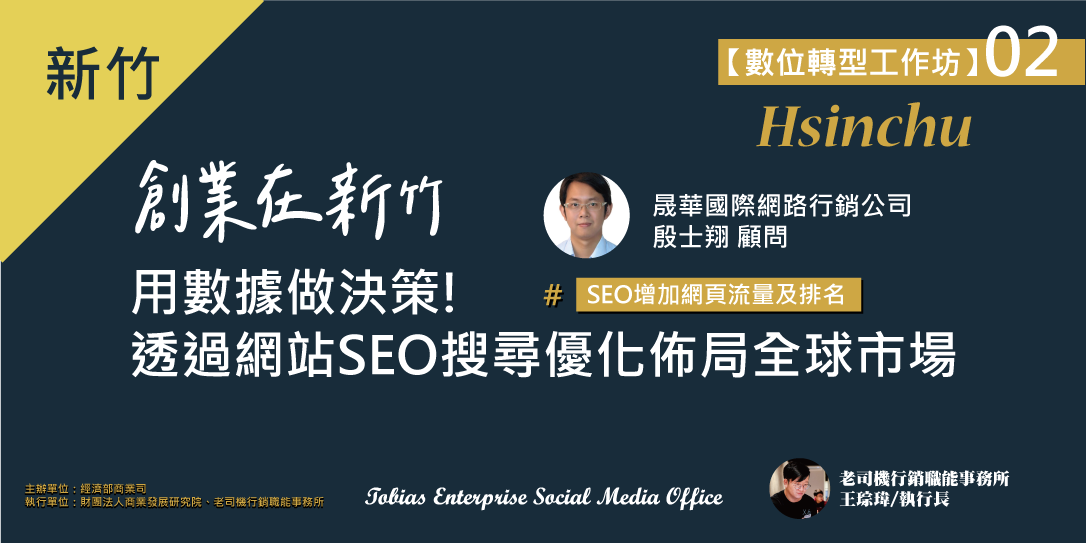 3/24【新竹】數位轉型工作坊:用數據做決策!透過網站SEO搜尋優化佈局全球市場~