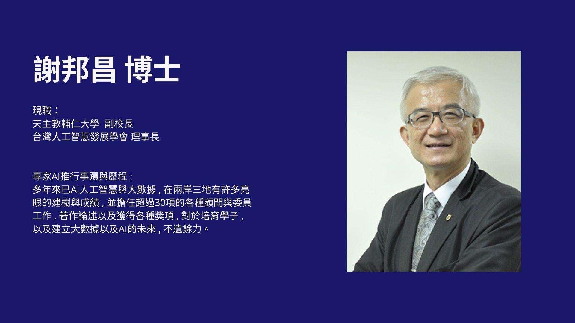 | 14:30~15:15 | 專題演講(五) Big Data to AI和新興/加值應用的 機會 | 謝邦昌 博士 台灣人工智慧發展學會理事長 輔仁大學副校長/教授 |