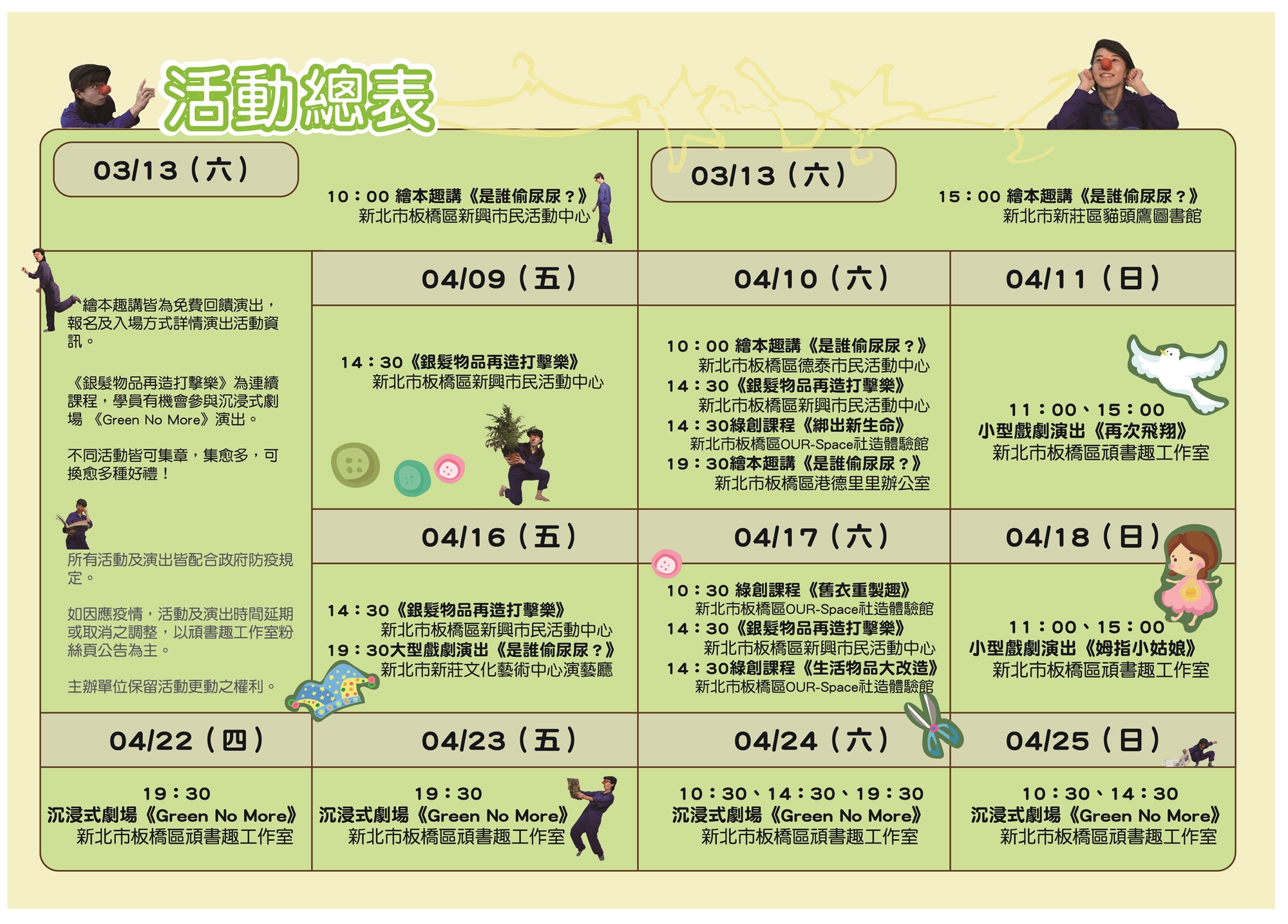 場地提供:新北藝棧76、OUR-Space社造體驗館、港德里里辦公室、新興市民活動中心、德泰市民活動中心、貓頭鷹圖書館