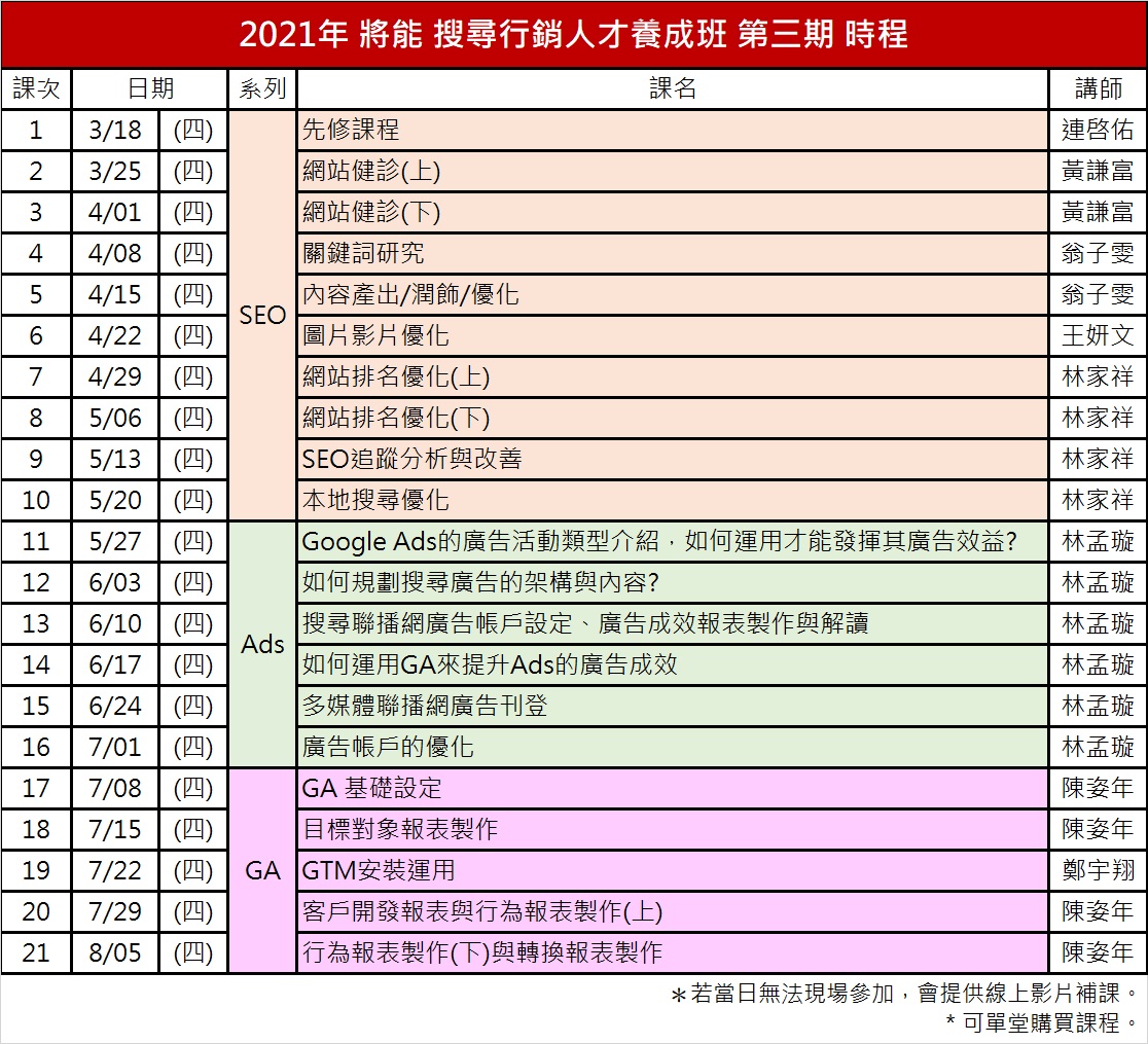 *將能數位行銷有限公司保有調整課程與修改之權利*