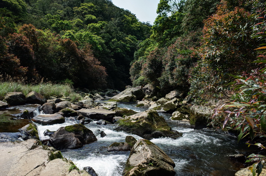 北勢溪古道這一條舊路,和灣潭古道一樣沿途風光明媚,行走古道之上,從林中不時可望見北勢溪溪流風光,時而激流偶有深邃的湛藍深潭,原始神祕之感甚於灣潭溪。