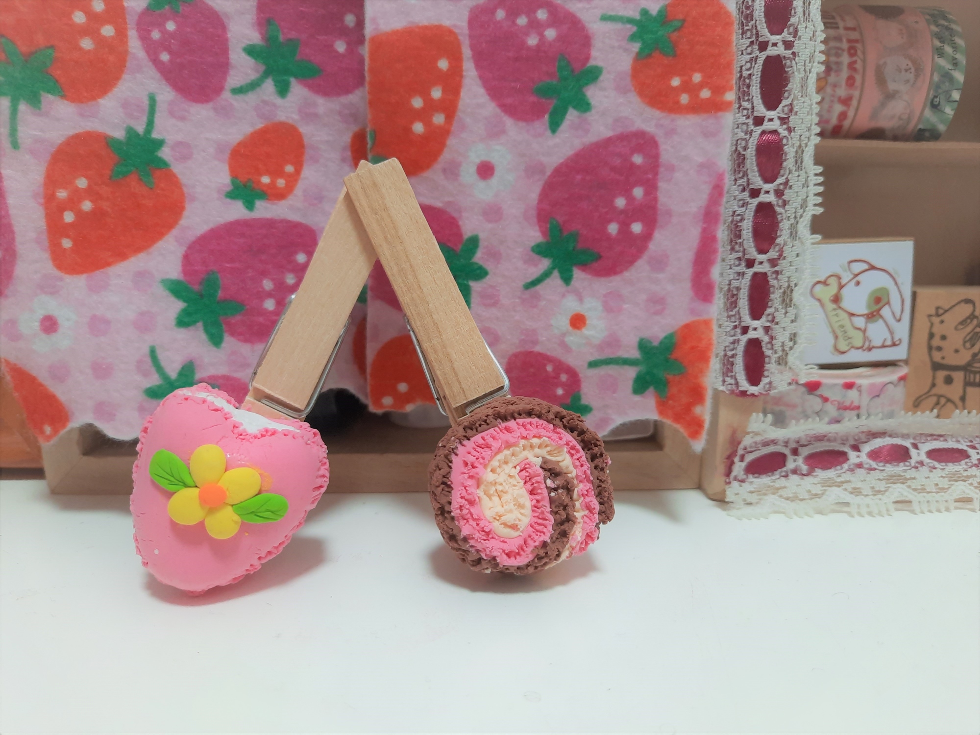 本次課程使用超輕黏土,做兩款甜點【愛心草莓馬卡龍+草莓巧克力瑞士捲】小巧可愛,裝飾memo夾,讓文具用品變得療癒可愛。