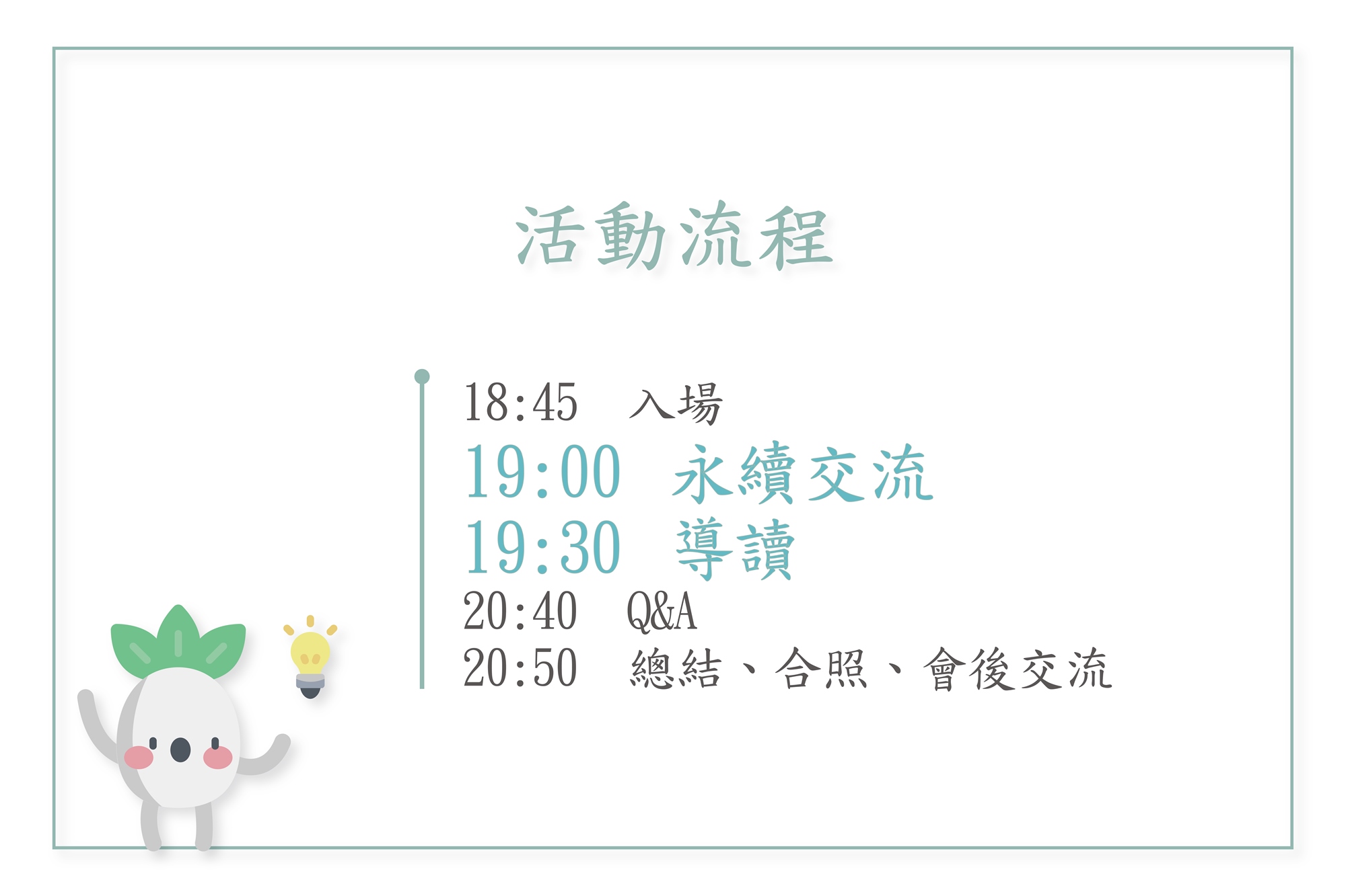 - 與會者自行購買並攜帶指定讀物前來參與(點我購買)