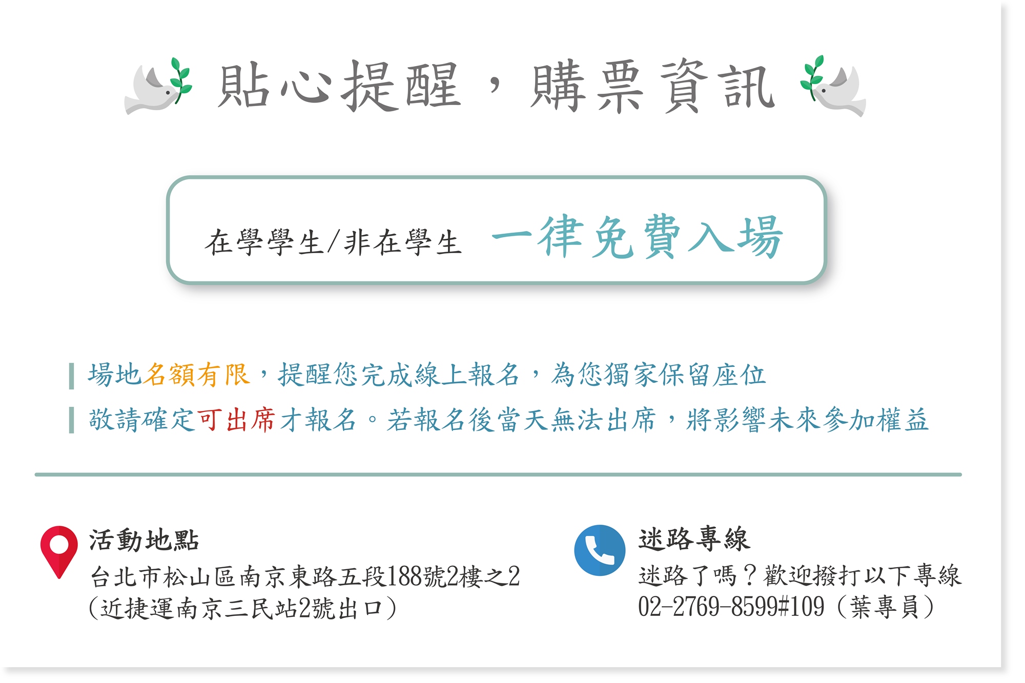 - 與會者可現場向基金會憑證件借閱指定讀物,結束暨回收不可將讀物帶離會場;