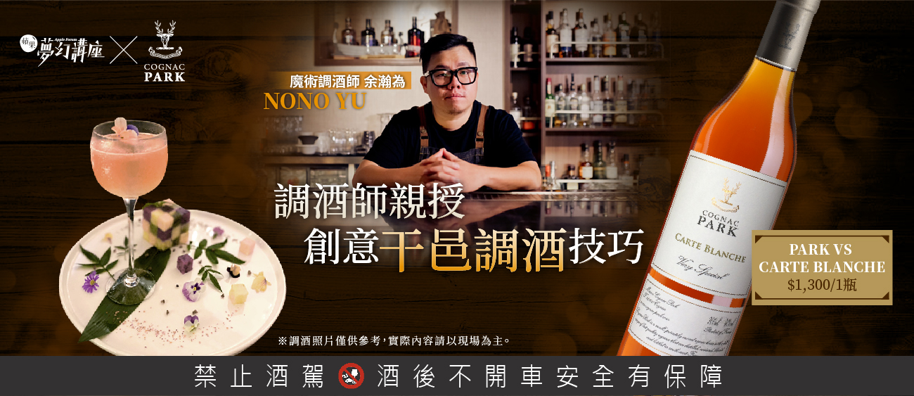 魔術調酒師余瀚為(NONO)也特於活動現場,調製使用PARK VS CARTE BLANCHE為基酒的調酒一杯,發送給嘉賓作為迎賓酒,此外,會進行調酒教學,讓派克干邑VS除了純飲、加冰塊飲之外,更增添創意手法,在家也能輕鬆喝到VS特調!