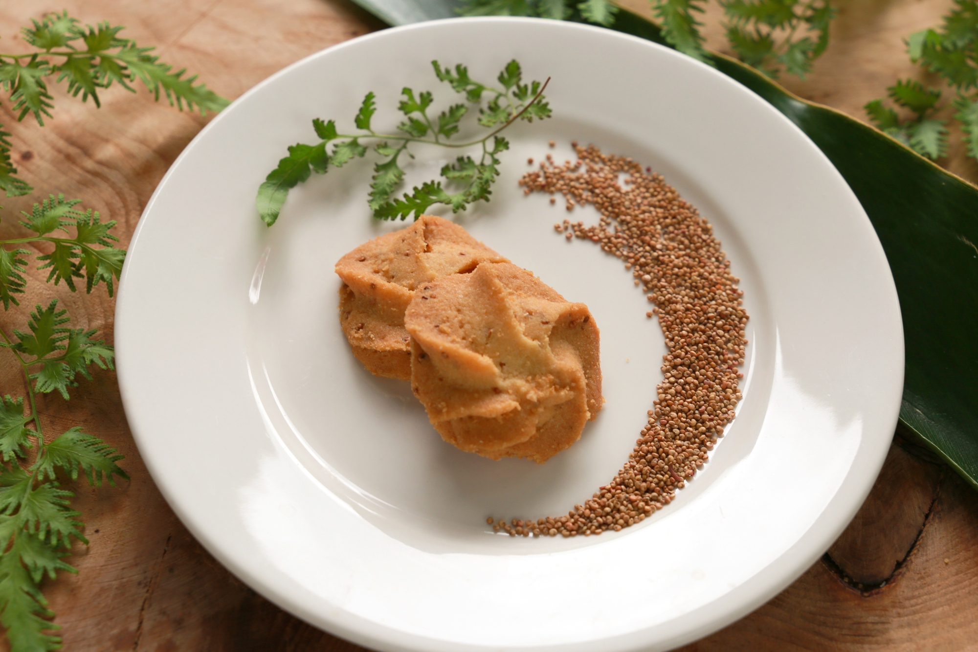 紅藜:排灣語「djulis」,為原住民族的傳統食材之一,具有穀類紅寶石之稱,擁有豐富蛋白質及礦物質,常見的料理有紅藜飯、紅藜養生茶等;少妮媱將親戚種植的紅藜,變成健康的餅乾小點心,不僅吃了健康,也吃進家人滿滿的愛意。