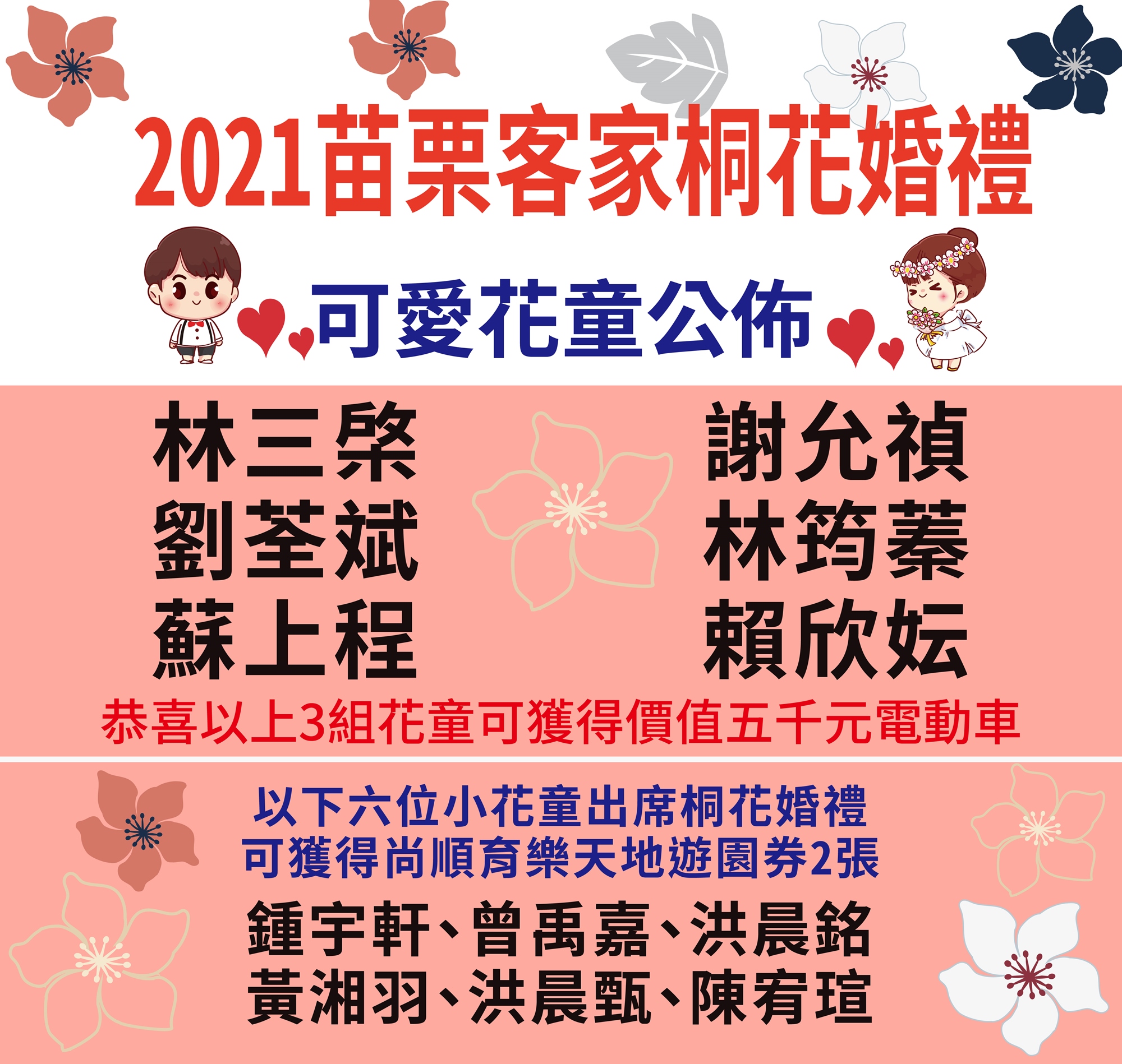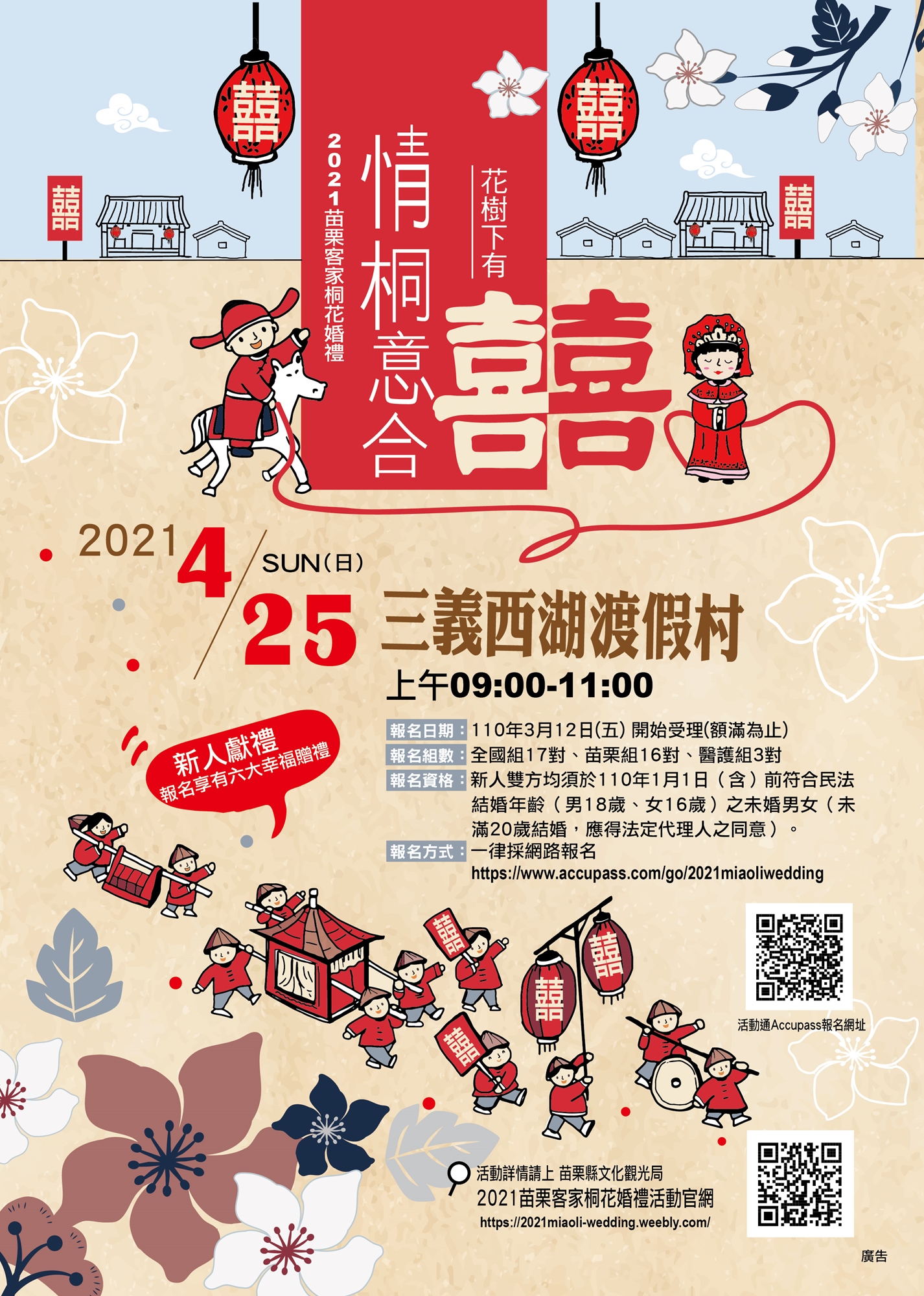- 2021苗栗客家桐花婚禮 一律採網路報名。