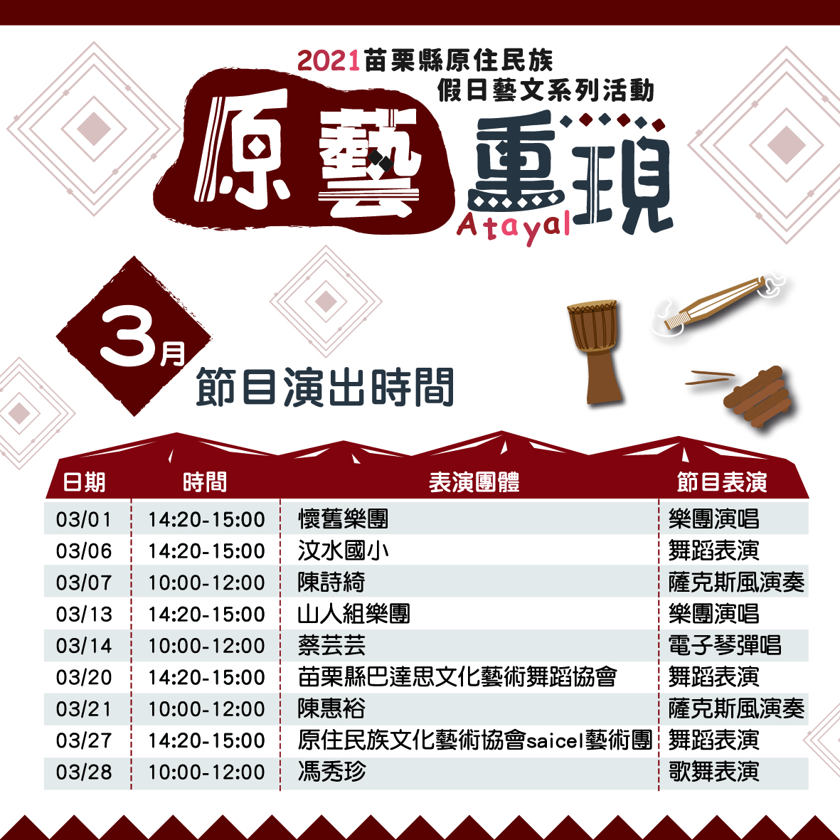 原藝重現◆2021苗栗縣原住民族假日藝文系列活動