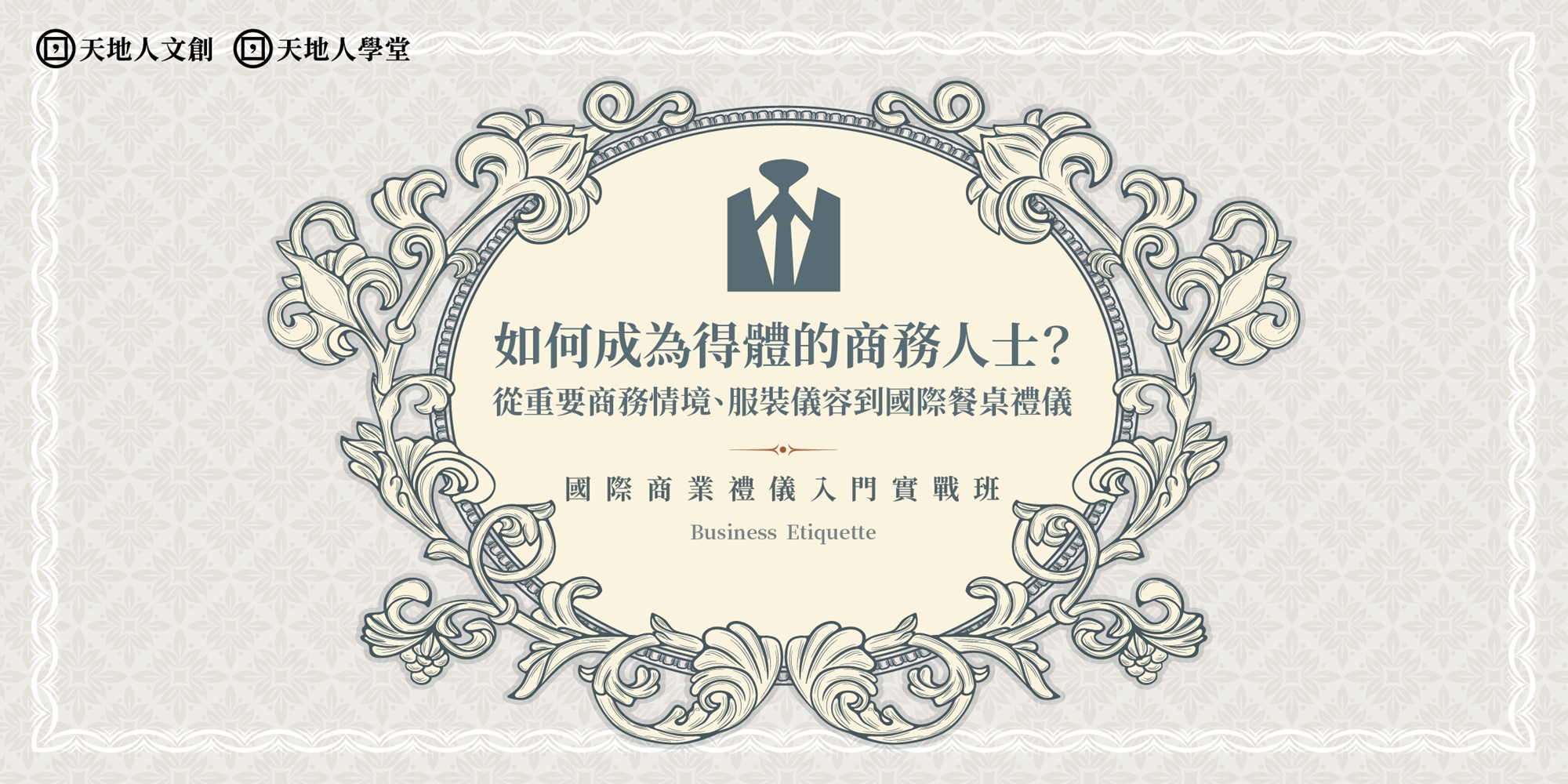 在跨國職場中,人與人之間的互動頻繁,如何與人接觸不失禮,提升企業間的良性關係,是商務人士必須具備的基本魅力。有鑑於此,天地人文創旗下天地人學堂特地規劃出「如何成為得體的商務人士?國際商業禮儀入門實戰班:從重要商務情境、服裝儀容到國際餐桌禮儀」,邀請到人事行政局文官培訓約聘業師親授課程,以多年扎實的實務經驗由淺入深帶領學員釐清國際禮儀的應對技巧,全面剖析各式專業商務禮儀的七大核心技能:(1)如何確立你的「人際定位」?(2)商務人士的接待互動禮儀;(3)淺談「行」的儀態:交通禮儀;(4)「商務會談」應注意事項?(5)掌握通行社交技能:服裝禮儀;(6)如何優雅進食?專業餐桌禮儀;(7)好人緣就是好商機:解析商務社交情境,透過這門課程,協助你瞭解國際商務禮儀的實戰技巧與Know-how。