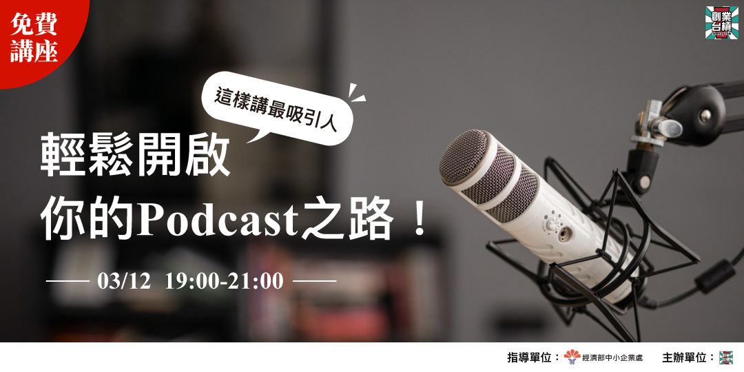 👆🏻 03/12 19:00 ~ 21:00 | 【免費講座】這樣講最吸引人~輕鬆開啟你的Podcast之路 !