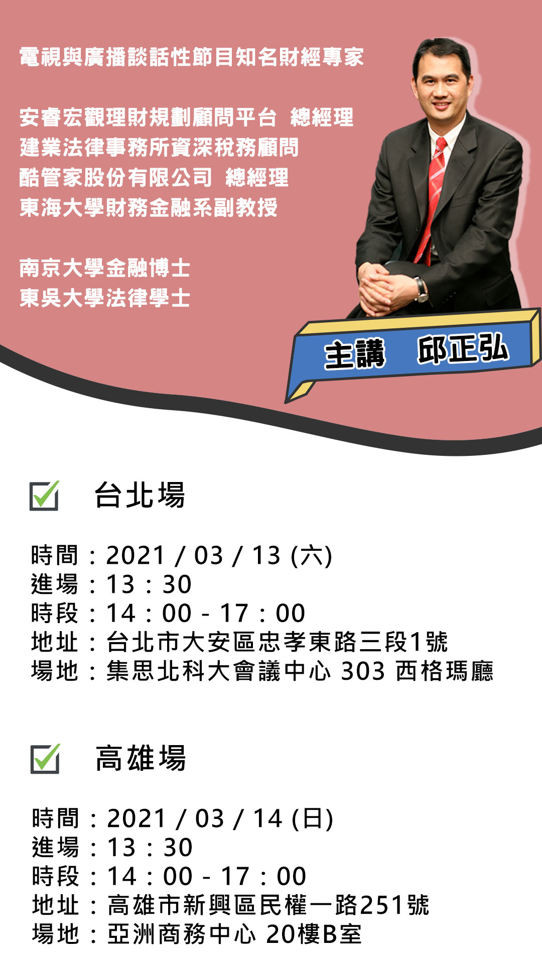 2021/03/21【台中場】報名請至ACCUPASS活動通網頁:https://www.accupass.com/event/2102240228401340955648