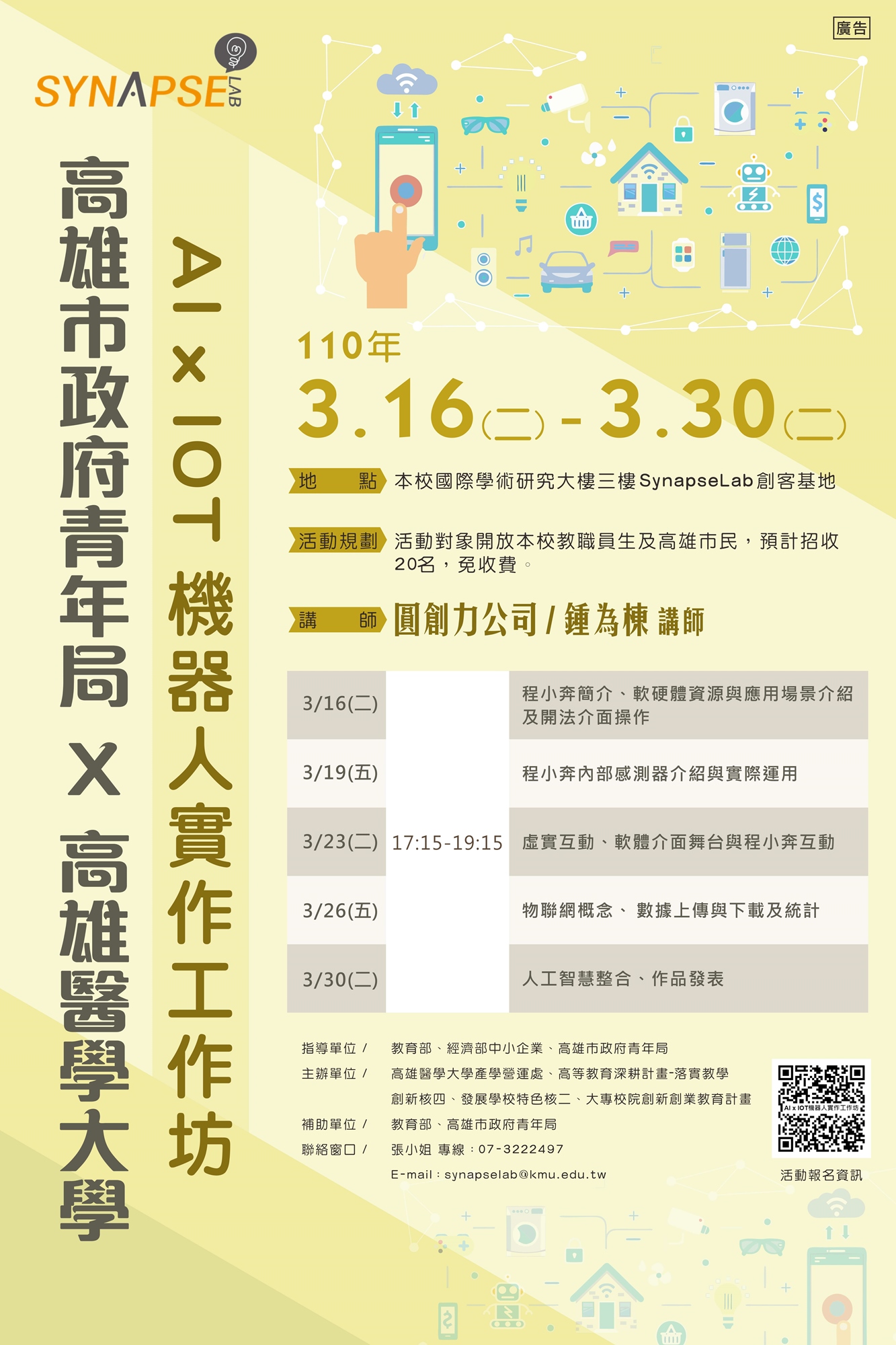 【聯絡窗口】張小姐 專線:07-3222497|單位信箱:synapselab@kmu.edu.tw