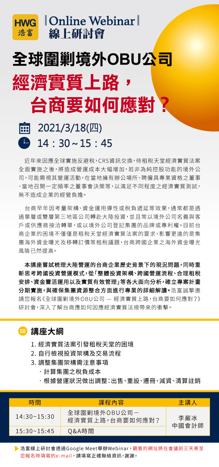 浩富線上研討會透過Google Meet舉辦Webinar,觀看的網址將在會議前三天寄至您報名時填寫的e-mail,請填寫正確連絡資訊,謝謝。