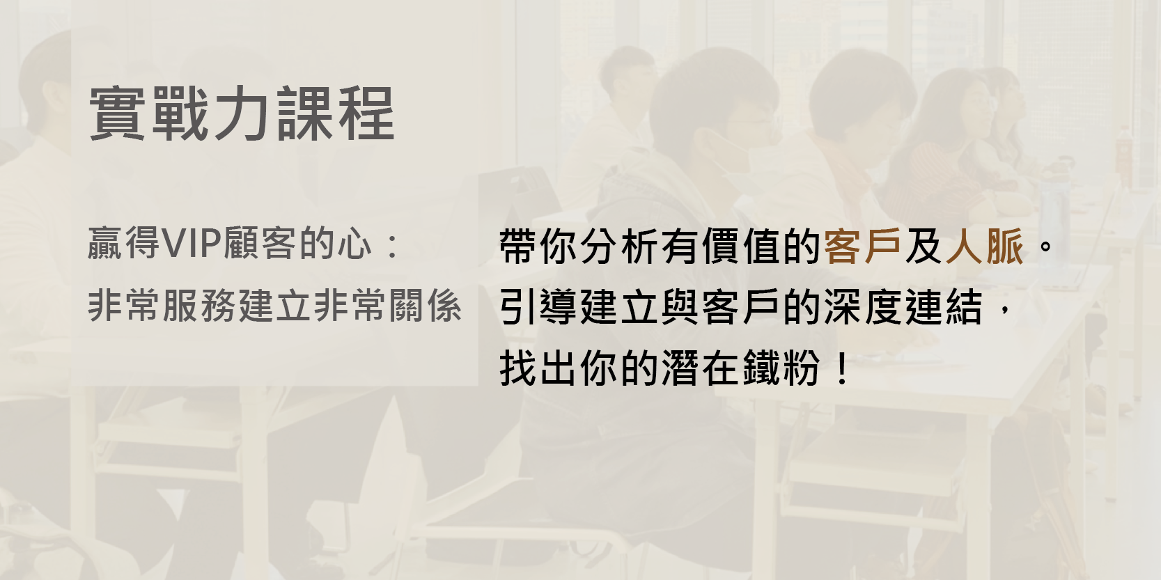 本次邀請到講師陳文敏,根據她在紐約頂級飯店服務頂級客戶與在亞洲輔導企業的經驗來說明企業要如何選對VIP、做對精緻頂級服務建立非常關係好創造非常業績!