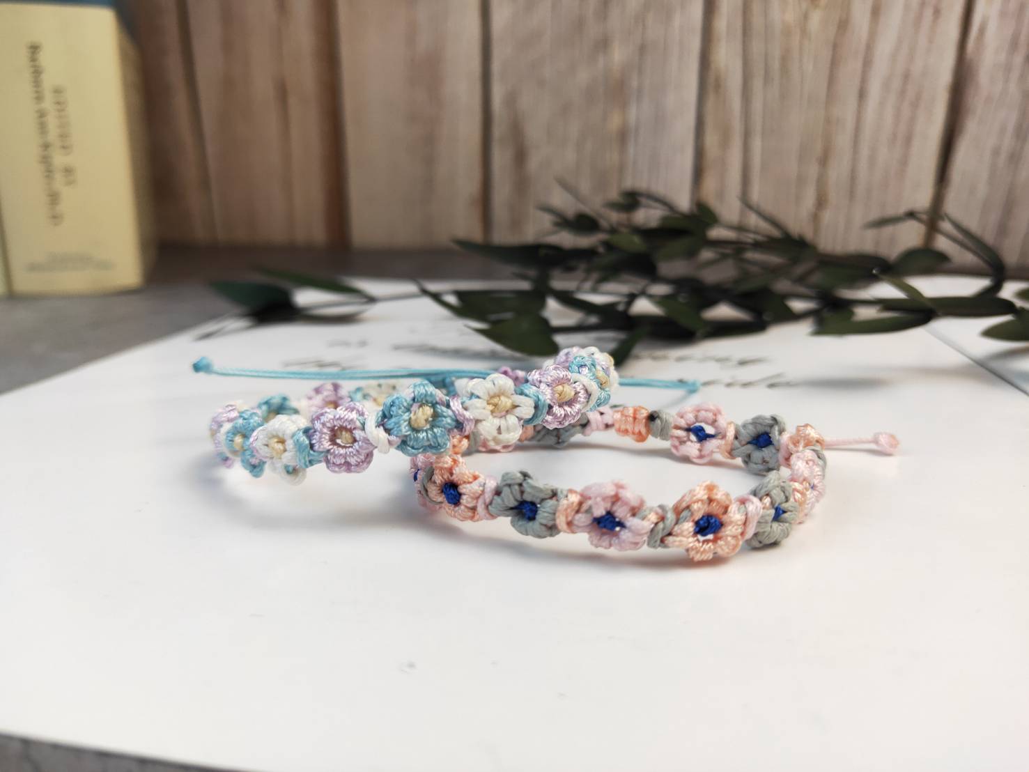 將色彩繽紛的蠟線編織成一朵朵的小花,花芯中帶著一顆顆寄予心願及幸福象徵的水晶礦石,在暖暖的春天中綻放著自己最獨特又迷人的風采。
