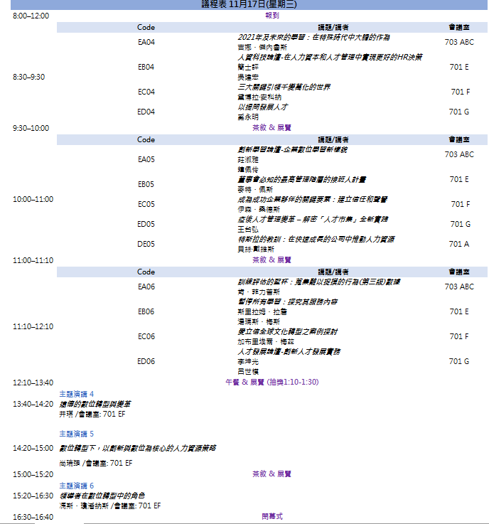 11/17 早上 8:30-12:10 分四個會議室進行