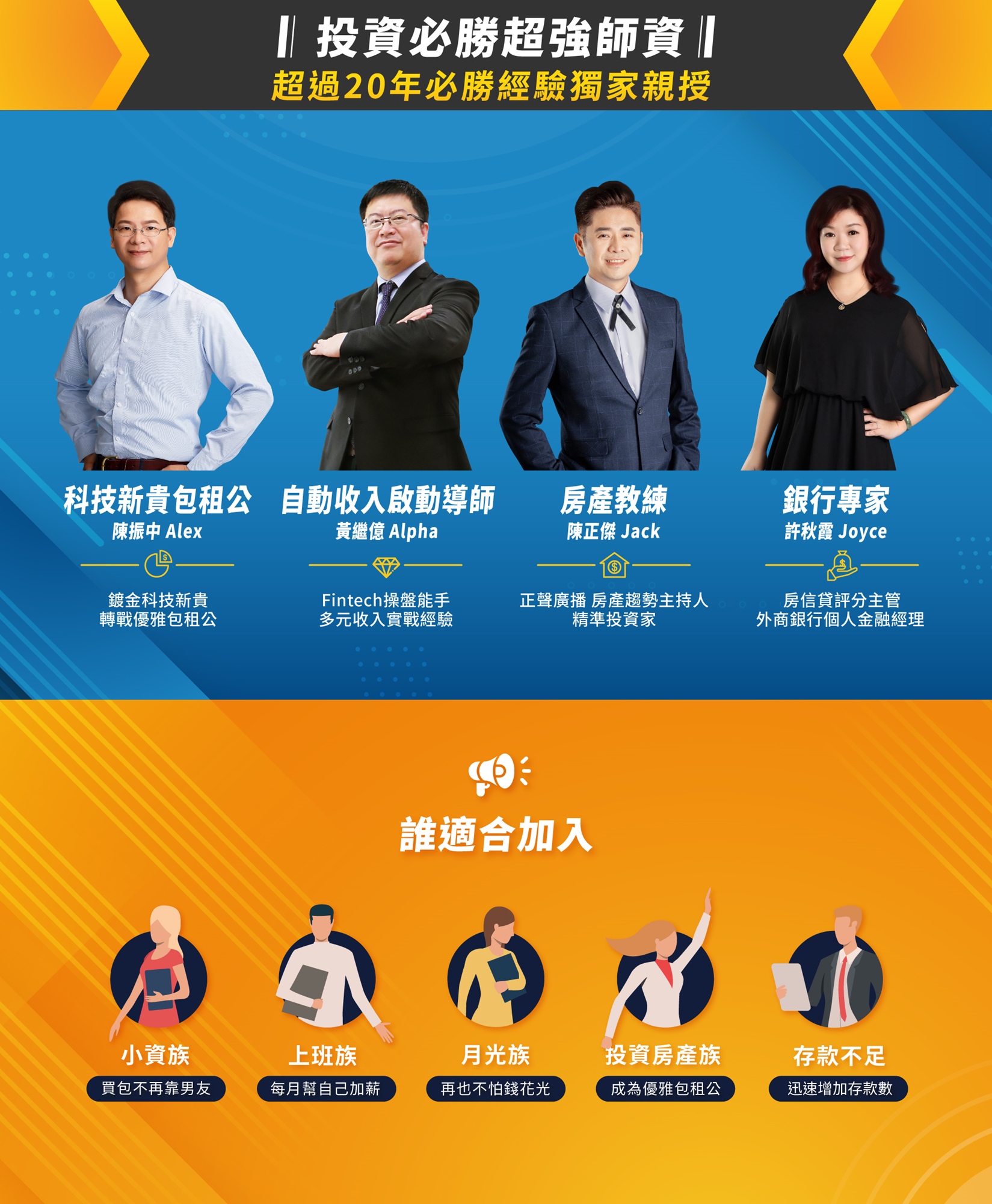 2.小資族、上班族、包租公、投資客:想階段性建立穩定被動收入、靈活運用財富者