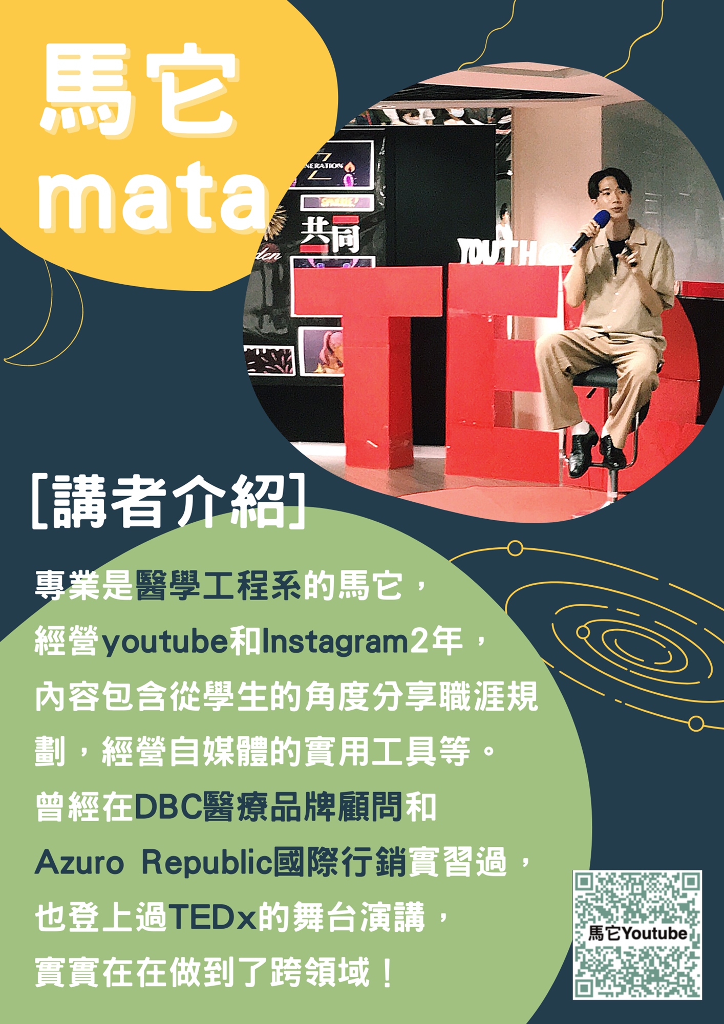 *講座地點:臺北醫學大學 杏春樓一樓 跨領域i8展演空間