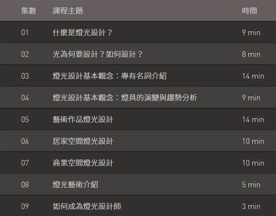 建立對燈光設計的基本認識,課程中也將實際示範針對藝術品、居家空間與商業空間的燈光設計。