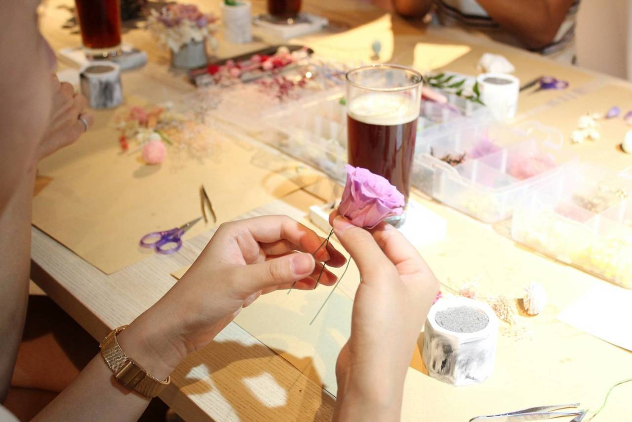 我們手作老師,過程中會帶領著你,挑選出自己喜歡的主花與配花,教你初學著也能做出來的方式,製作出專屬於你的不凋花盆,視覺的享受,體驗美所帶來的不同層次。