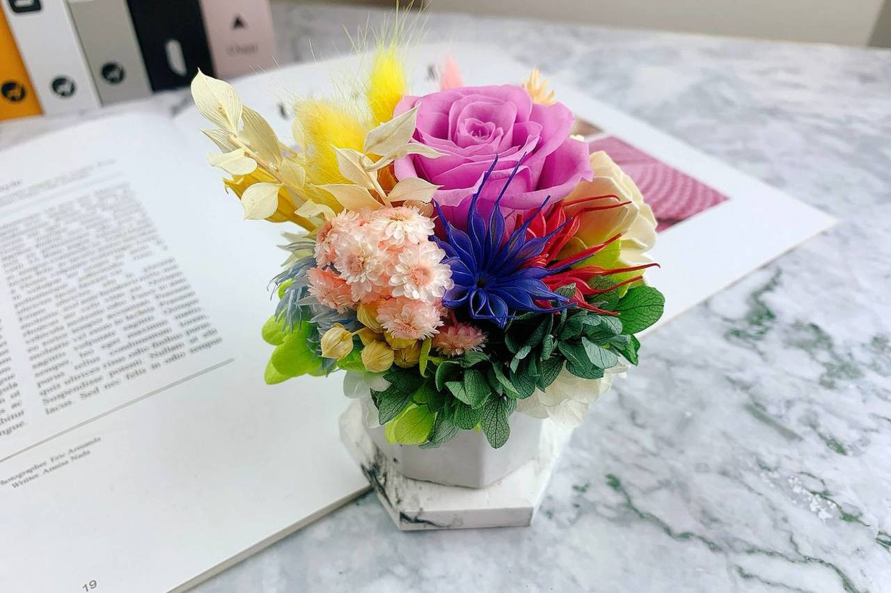 能夠讓鮮花的保存期限延長是永生花的一大特點。無需澆水,只要保存環境良好,可以長時間維持相同的外觀。另一方面,乾燥花比較脆弱,一般來說它的保存期比永生花短。