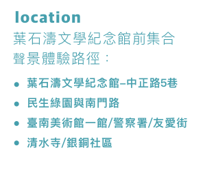 2021年第一季我們將串連「臺南古城節」,進行「文學路徑」與「歷史場景」的聆聽現場!