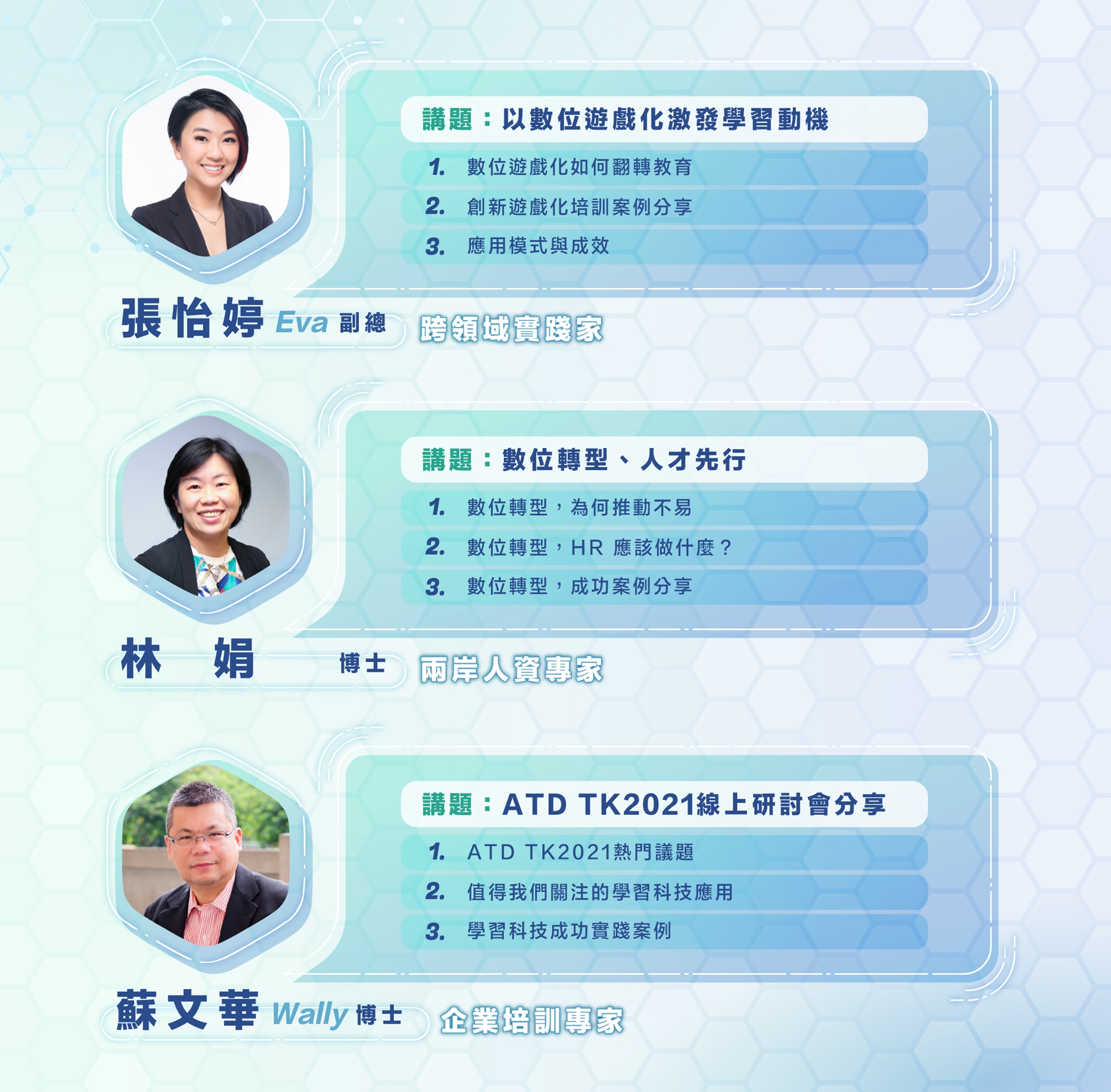 | 15:50-16:50 | ATD TK2021線上研討會分享 (蘇文華(Wally) 博士|企業培訓專家) |