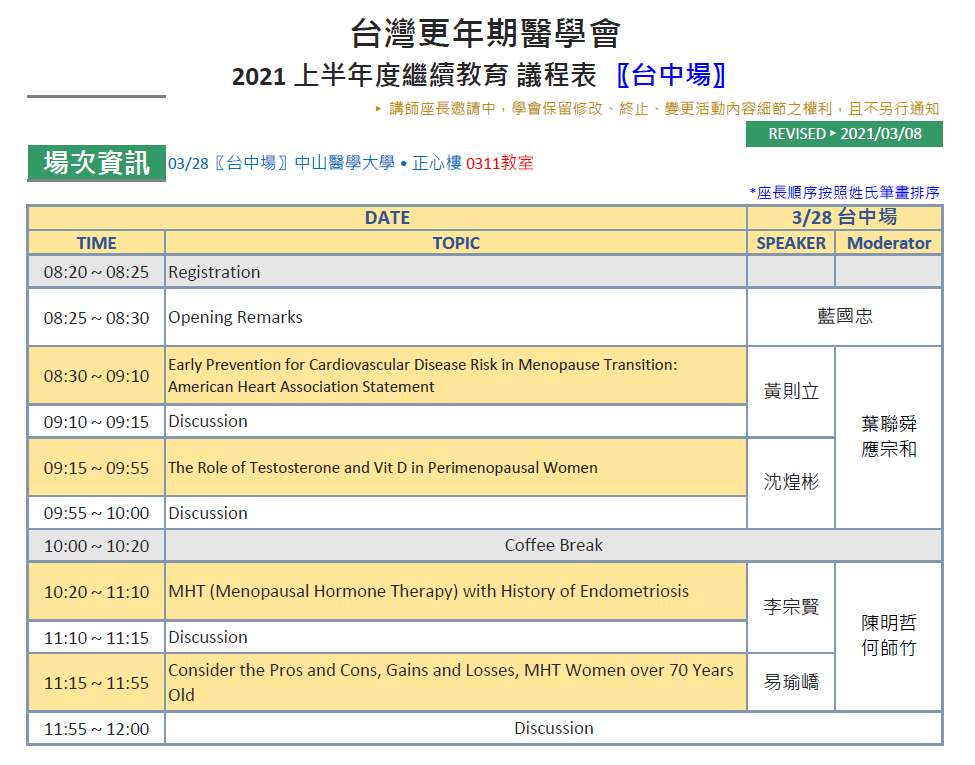 ‣ 台灣更年期醫學會會員:免費,須繳清常年會費
