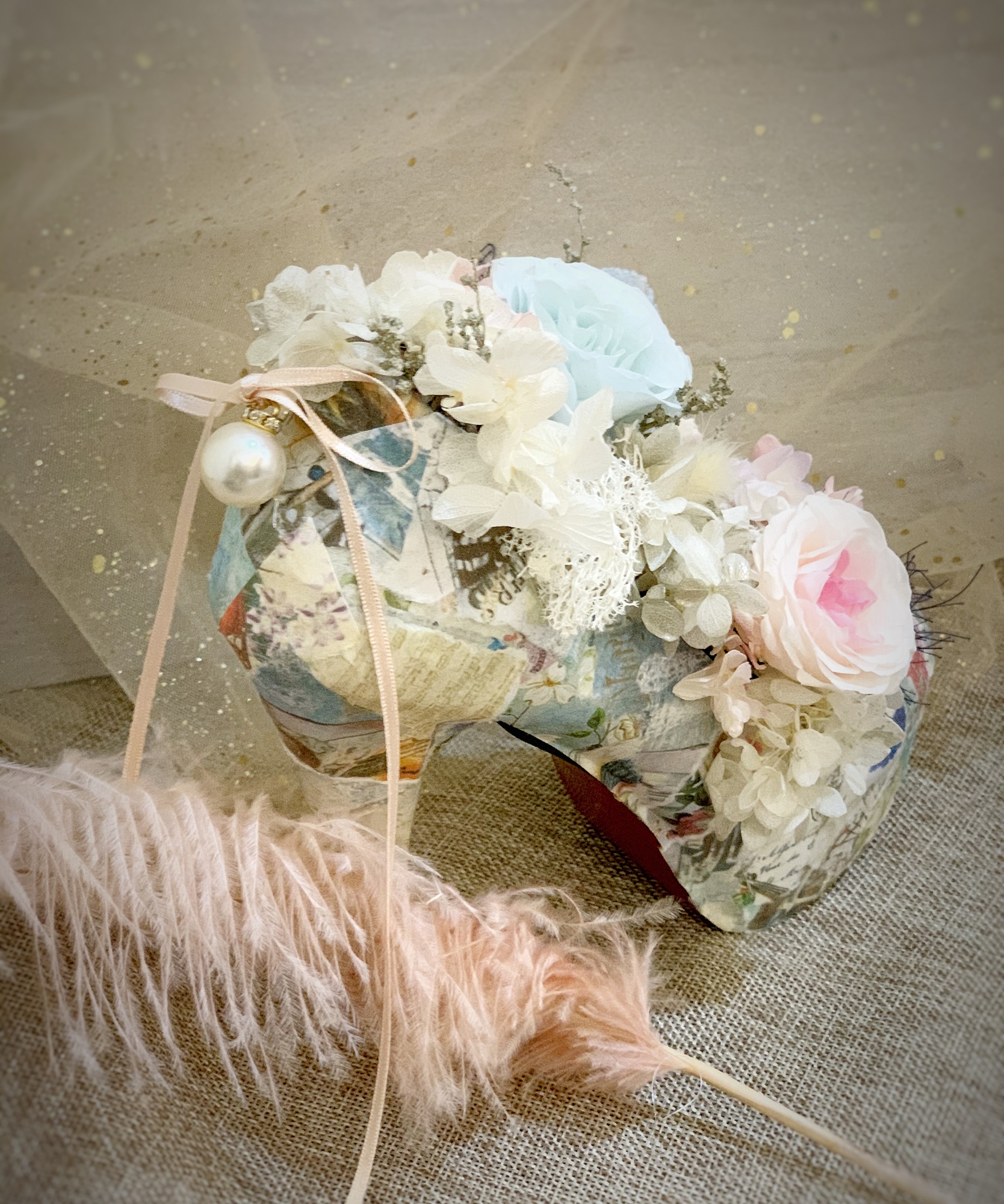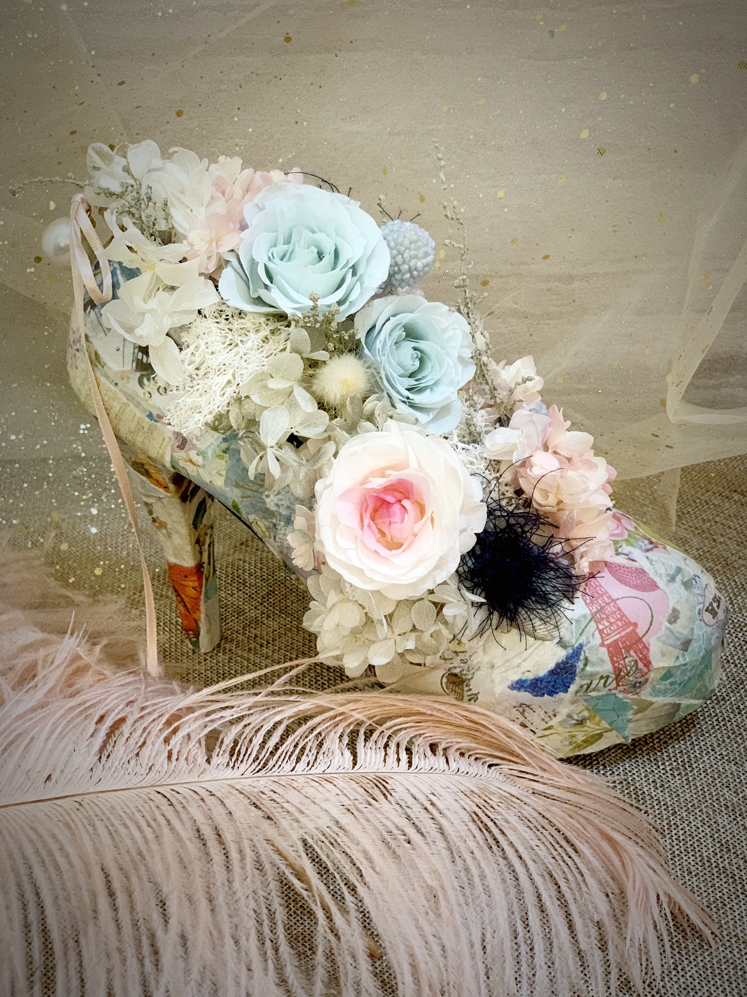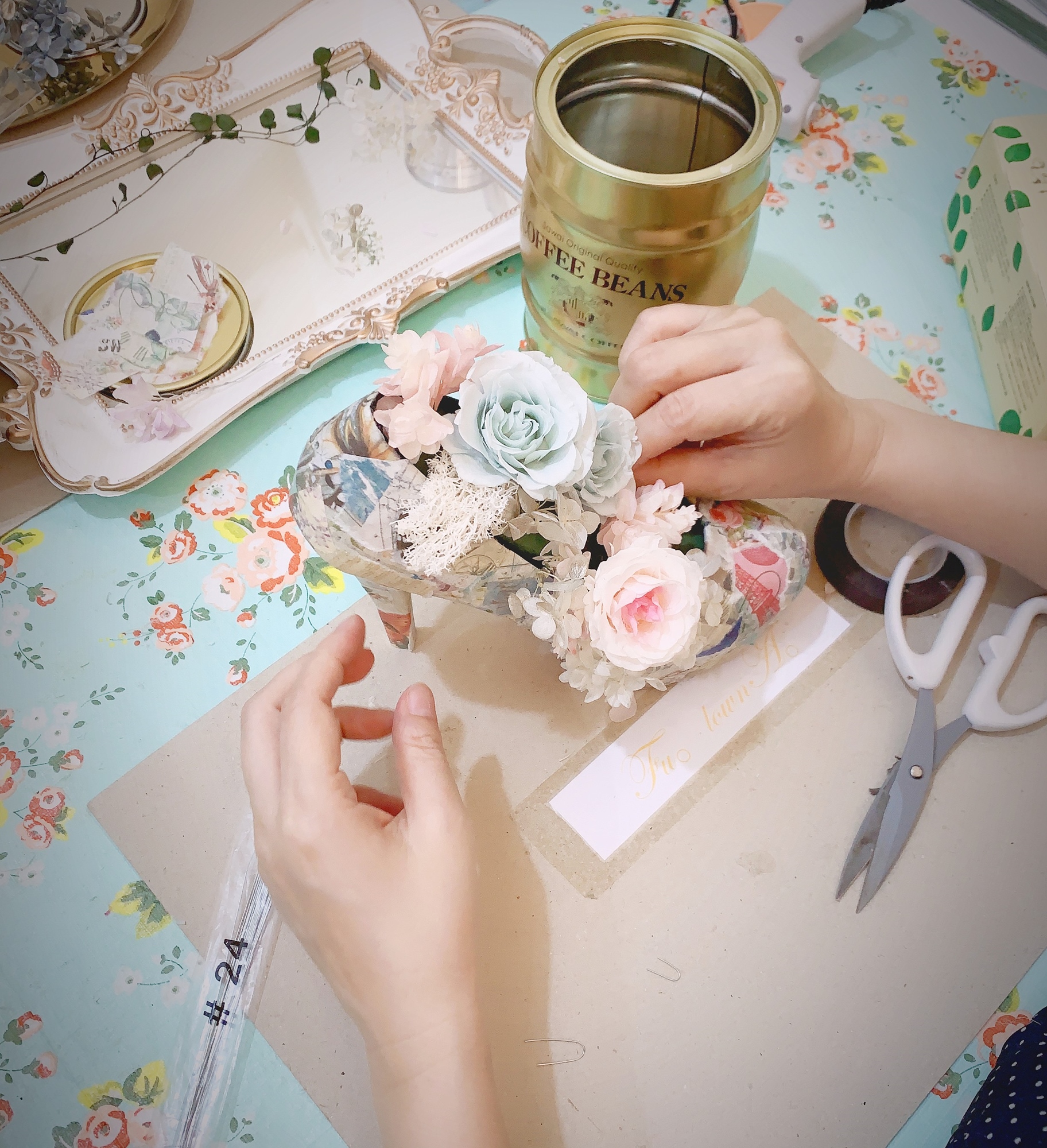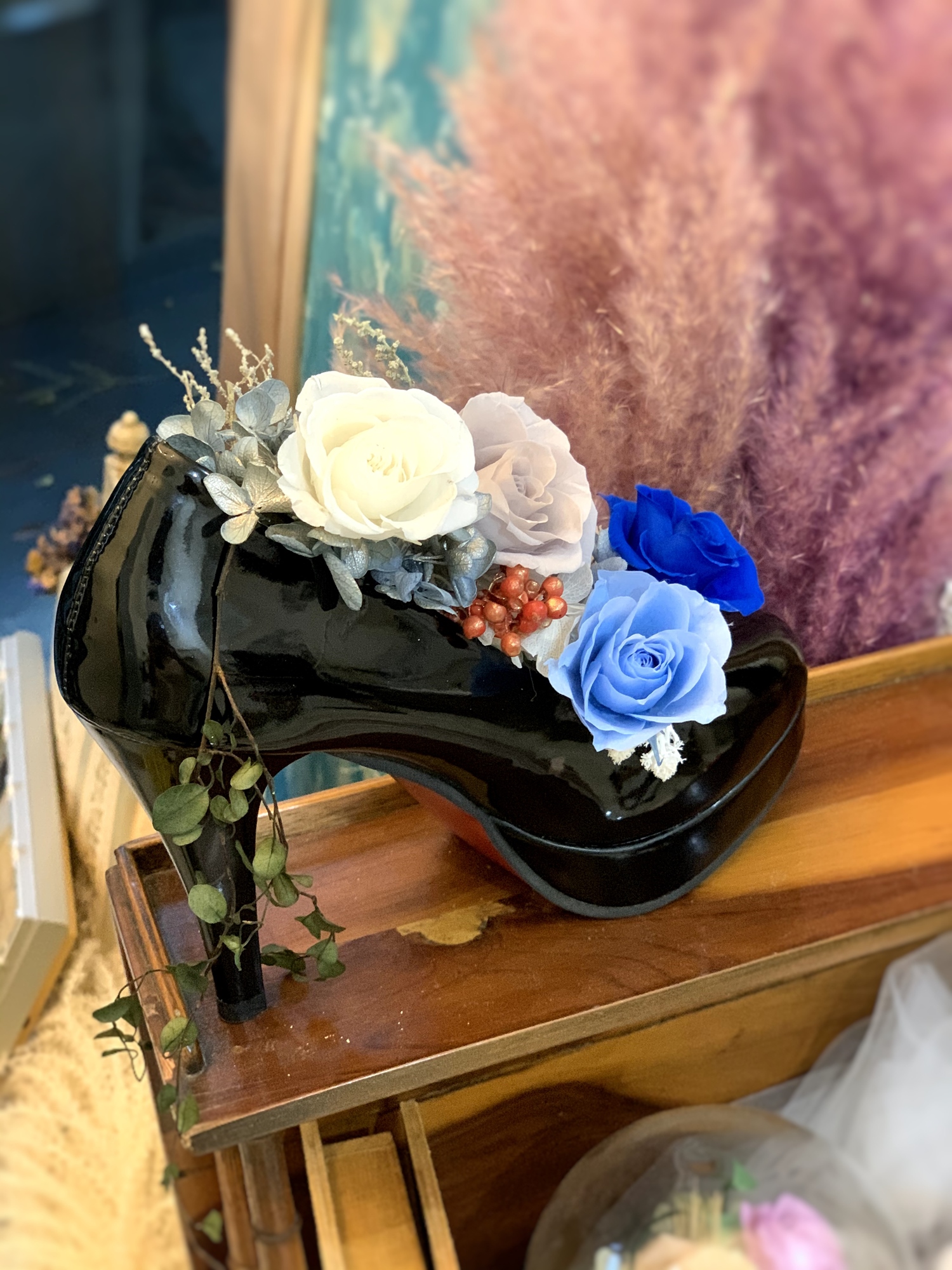 手作課程中的永生花材,我們只選擇有信譽與品質的「日本AUBE不凋花協會」花材。搭配的花材與花色饒富質感,跟著老師慢慢佈置自己的高跟鞋,最後滴灑些許專用的香氛,不管是當居家擺飾或是送人都是非常適合! 快來體驗吧!