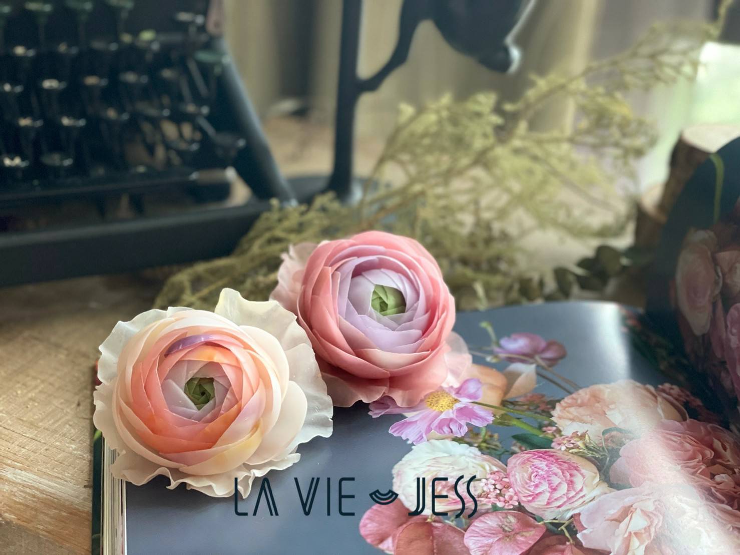 蜜蠟花使用,天然蜜蠟,是一種具有黏性和延展性的素材。透過手捏及小型工具塑形到極為薄透,捏製出宛如真花般自然柔軟的的花瓣效果。