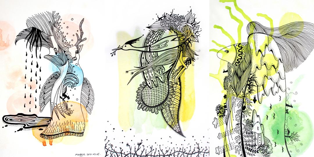 以黑白創意線稿為創作核心的Maggie,他的每一幅畫都是他想像力的延伸。