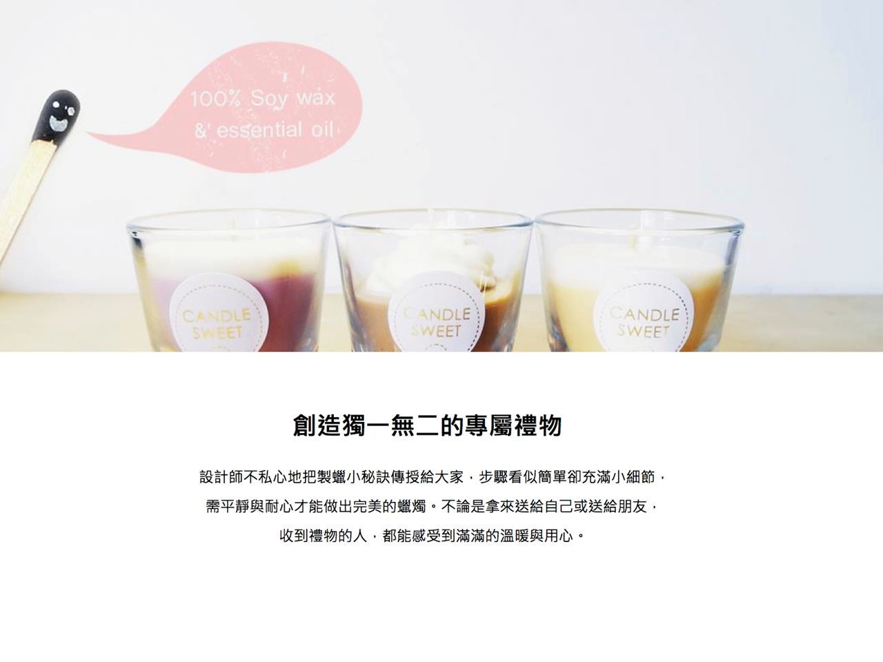 從五年前創立CANDLE SWEET,到開辦手作教學課程三年多,到推出DIY材料包,已經有將近千人體驗過親手製作大豆蠟燭的樂趣。感謝所有支持CANDLE SWEET理念的人,學會透過雙手製作出友善環境的禮物,與大自然共處和珍惜每一刻。