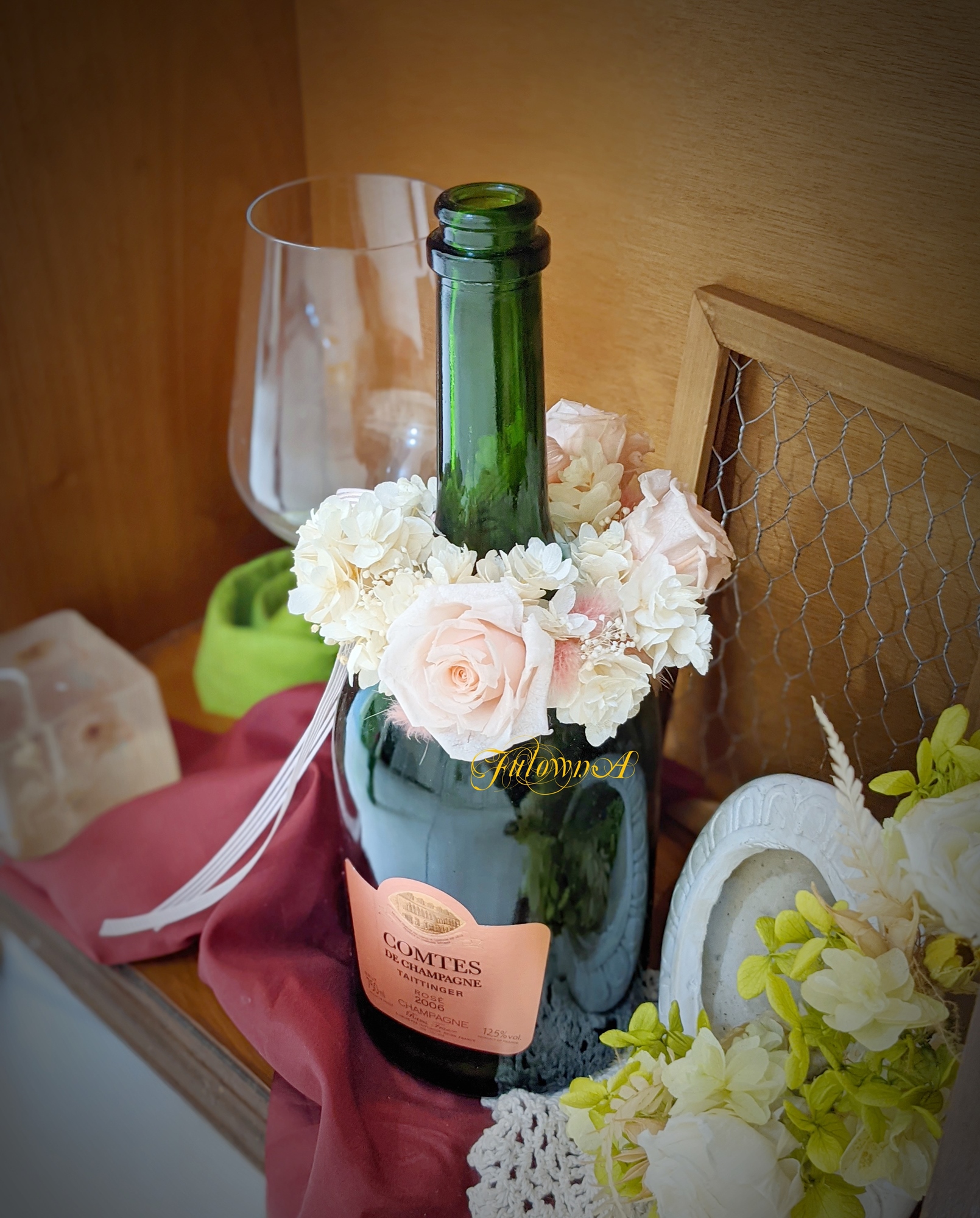為你收藏的酒瓶換上新衣裳,酒瓶裝飾花運用多層次堆疊技法,獨有的高級感在酒瓶上發揮的淋漓盡致;跟上潮流,手作專屬於你的「酒瓶裝飾花」!