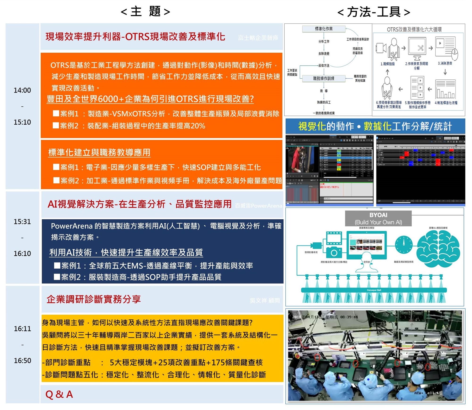 參與對象:生產體系中高階主管、廠長、單位主管、專案主管、精實管理、IE 、品管圈及相關人員