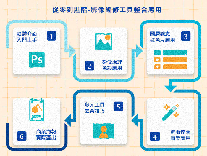 - 了解Photoshop圖層、遮色片等應用原理,打造更有質感的視覺畫面