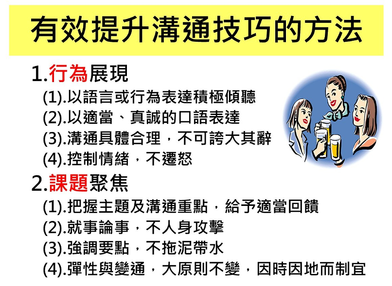 2. 學習溝通協調技巧如何善用於日常工作執行上,以提升溝通協調能力與工作效率。