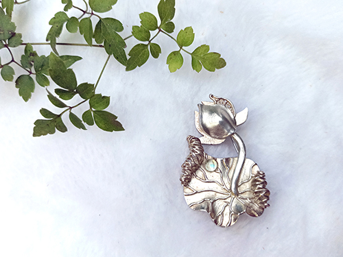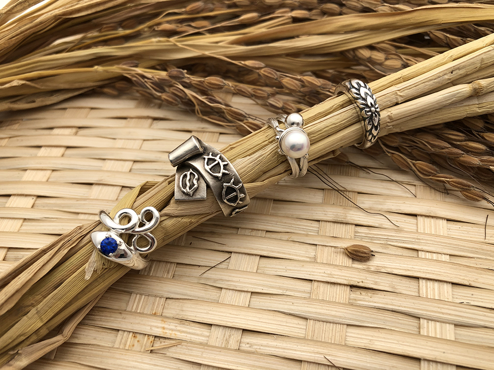 「岩之月」品牌名稱來自於我們農產品品牌,反映著深夜遊走田間撿拾福壽螺,月光照在岩石上的景象,成立銀黏土工坊後共用品牌名稱,由於對土地的熱愛,作品裡常常包含著大自然的元素。